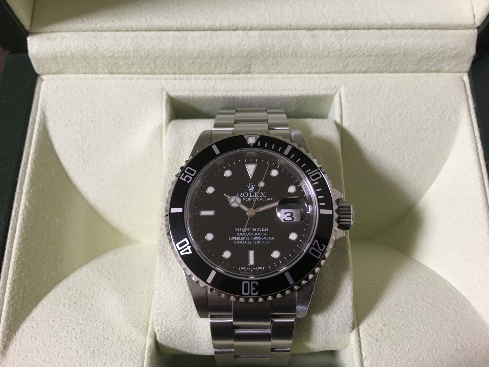 ケースサイド及びバックルに小傷及びスレ等はありますが、打痕や深い傷はなく外装仕上げをすれば綺麗になる程度だと思います。(写真を参照して下さい。)ガラスに欠けもなくベゼルの状態もいいです。2017年7月にロレックス専門店の提携先でオーバーホールを実施している商品だったので、2018年2月にロレックス専門店で購入しました。