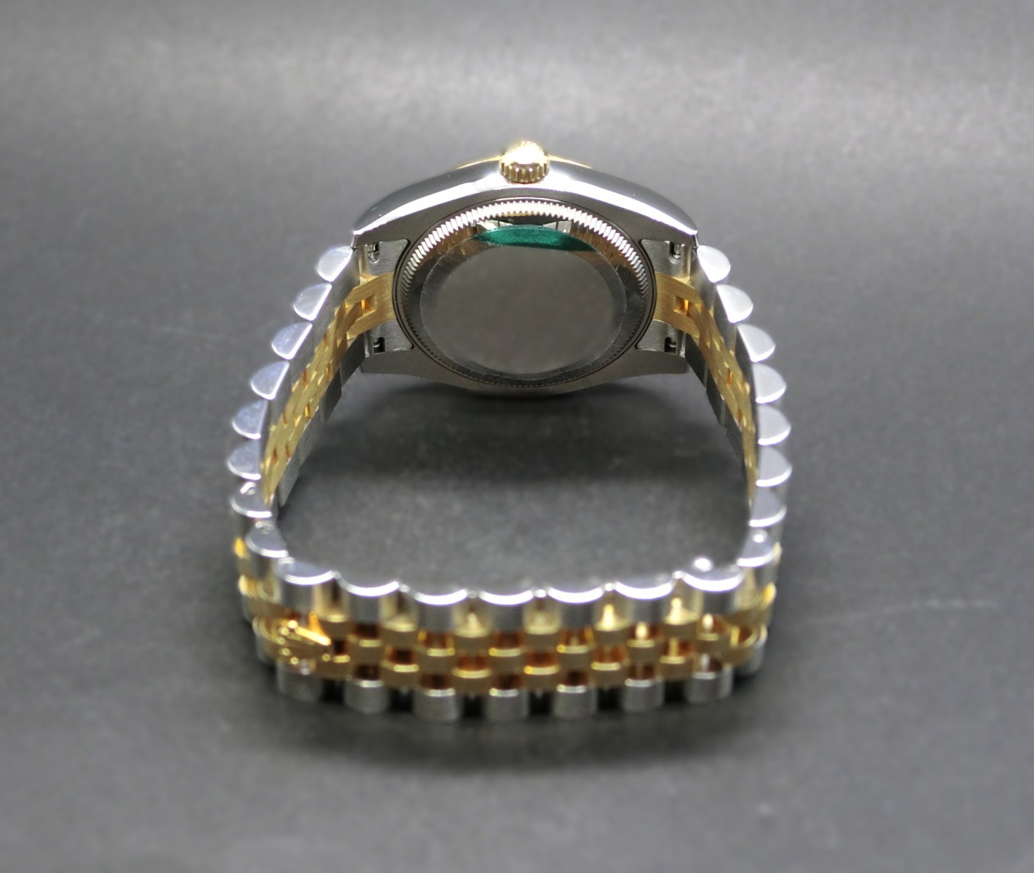 ブレスの一部に経年による金ヤケが少し見られますが、コマは未調整で使用感もなく、新品同様のコンディションです。