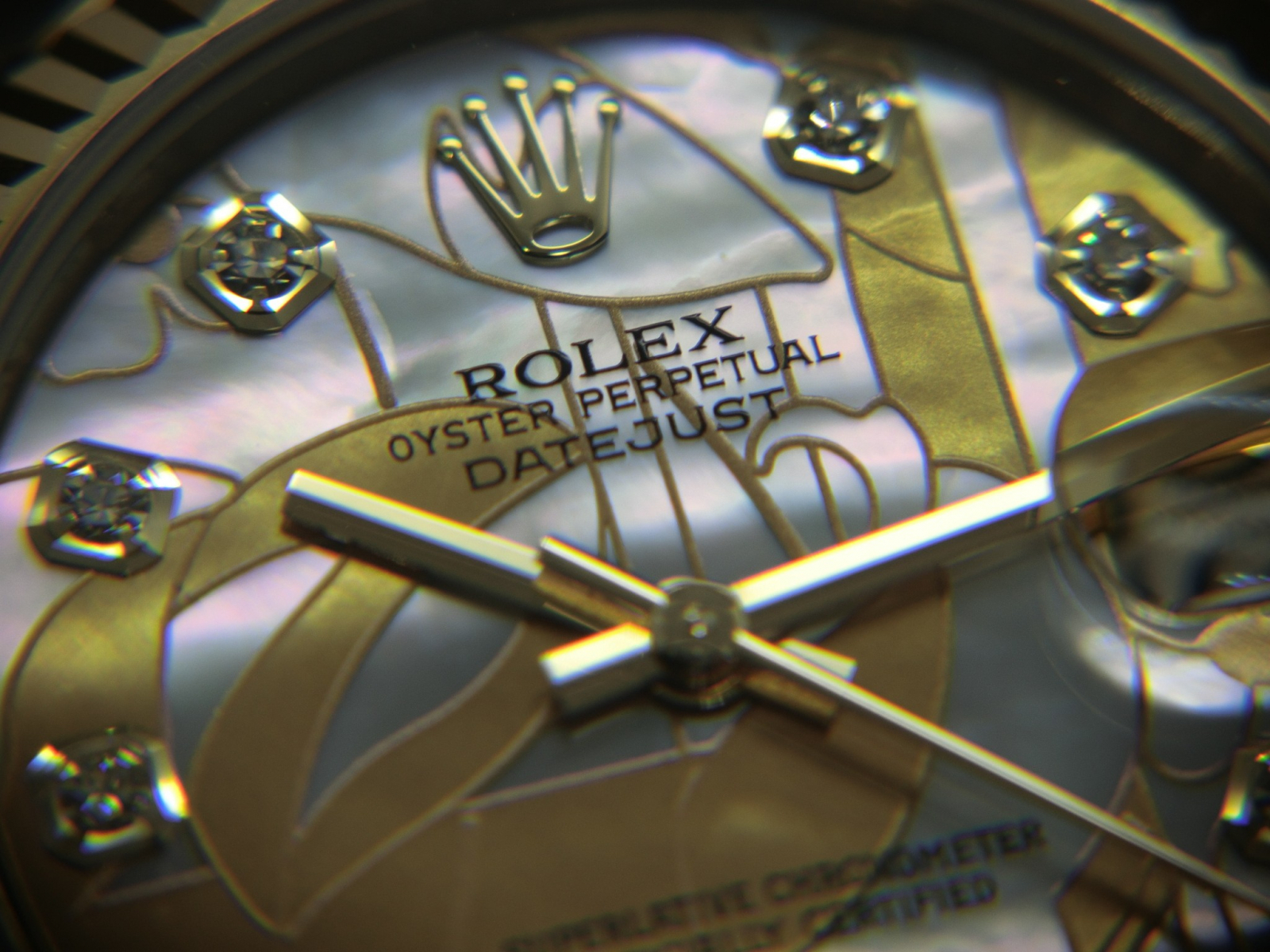 マザーオブパールにゴールドを吹きかける手法が用いられたゴールドダスト・ドリーム文字盤。