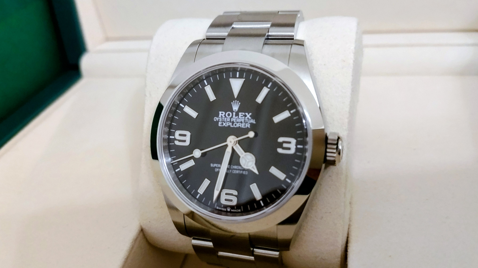 2023年新作。 エクスプローラー生誕70周年の年に新しいサイズ40mmモデルが発表されました。 オイスタースチールのオイスター パーペチュアル エクスプローラー 40は、特徴的な 3、6、9 の数字とクロマライト ディスプレイの際立つブラックダイアルを備える。 ブラックダイアル...