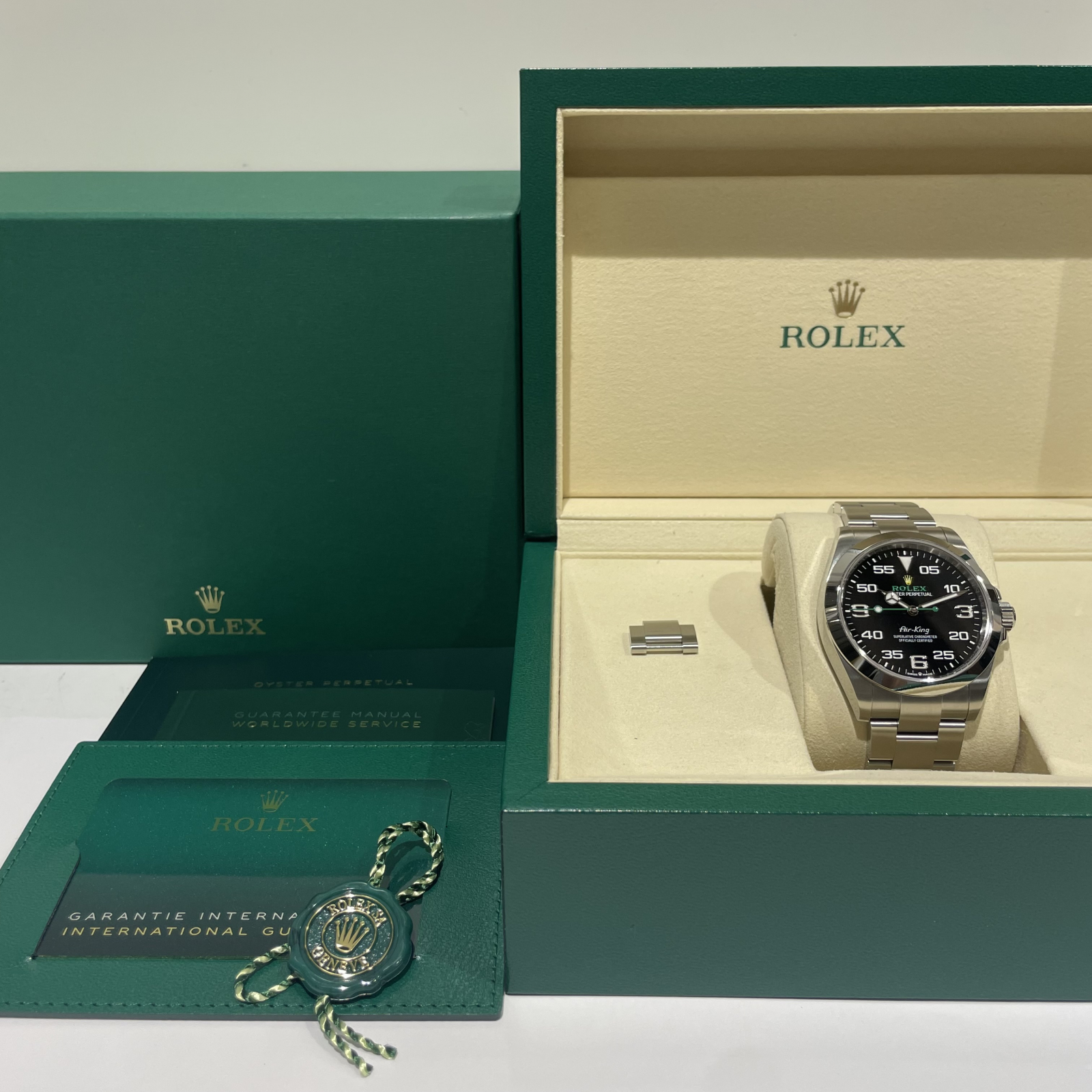 箱・保証書(2025年8月印)・冊子・グリーンクロノメータータグ・コマ×1