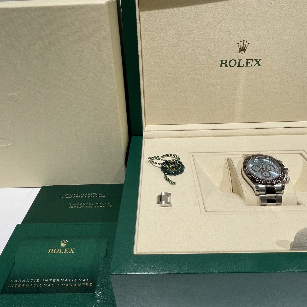 箱・保証書(最新ギャラ:2023年9月)・冊子・グリーンクロノメータータグ・コマ×1