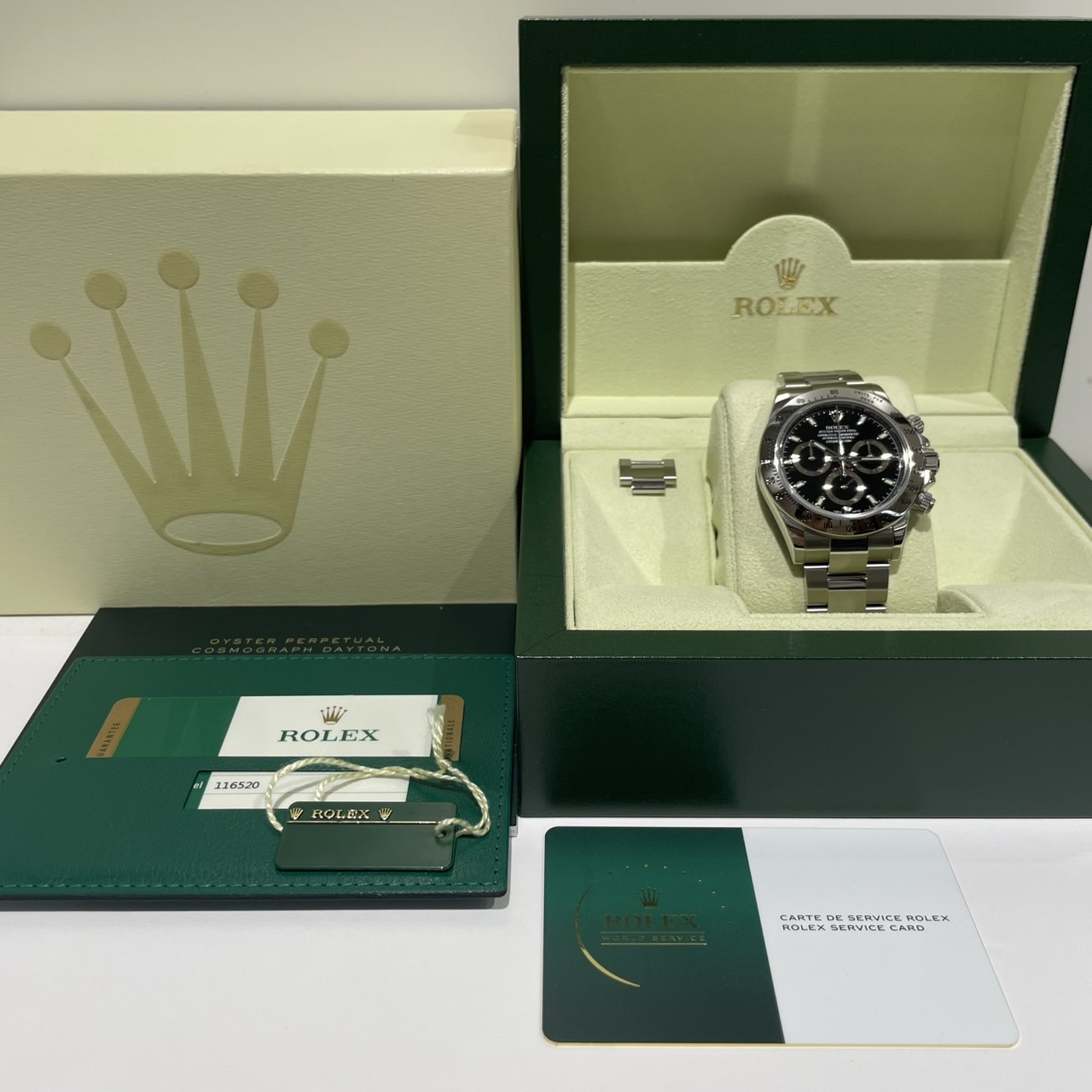 116520新バックルの白文字盤探しています。
