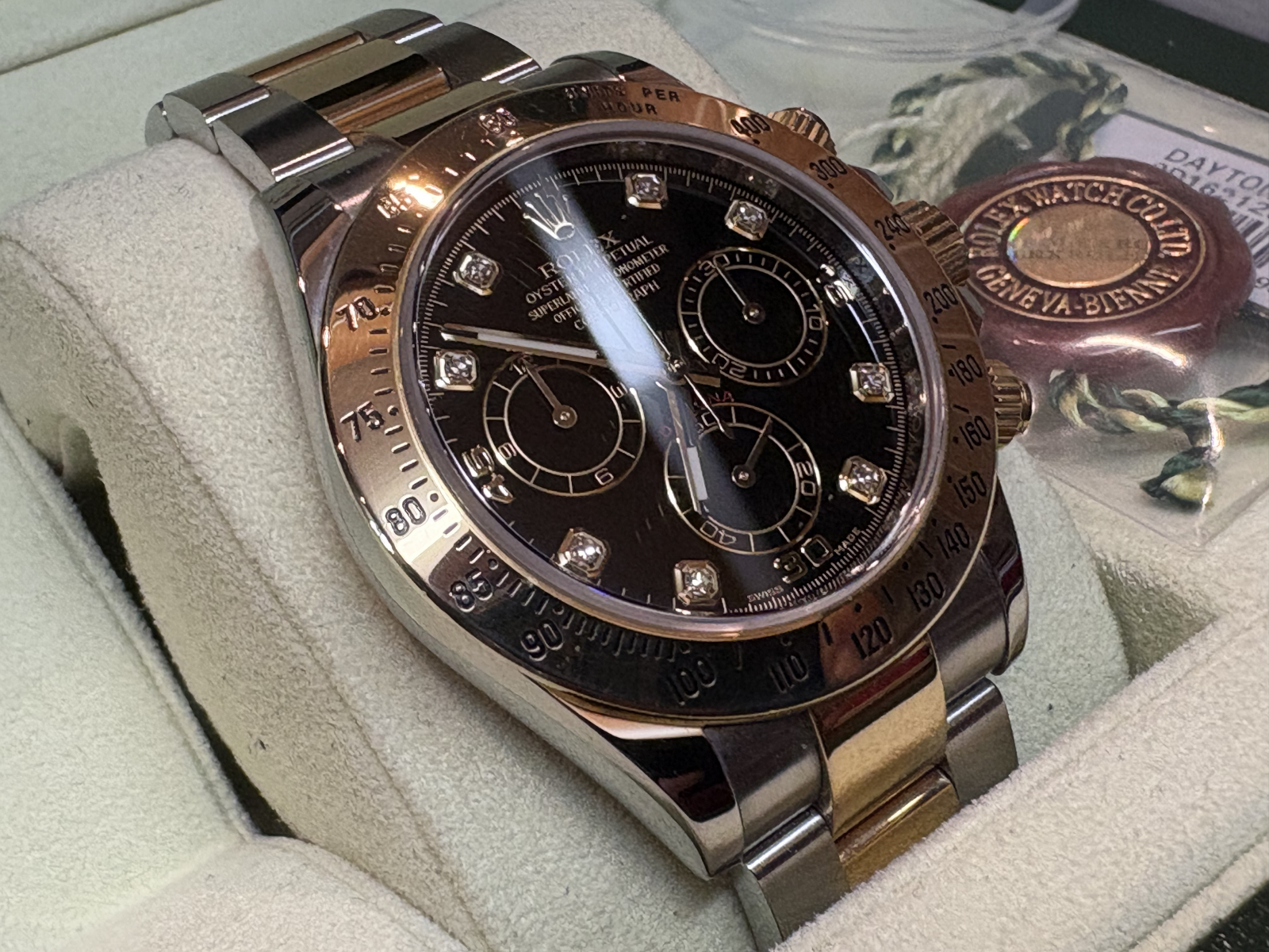 デイトナコンビのダイヤ黒文字盤です。