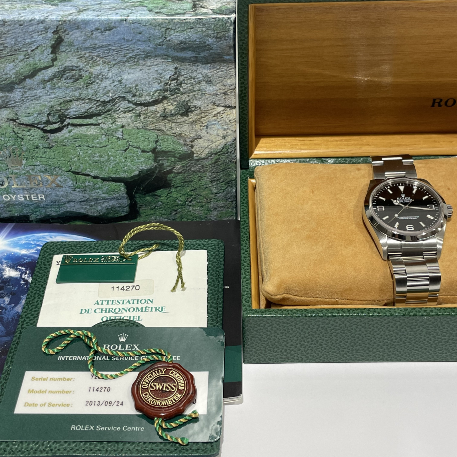 内箱・保証書(並行:2002年10月印)・冊子・グリーンプライスタグ・レッドクロノメータータグ・国際サービス保証書
