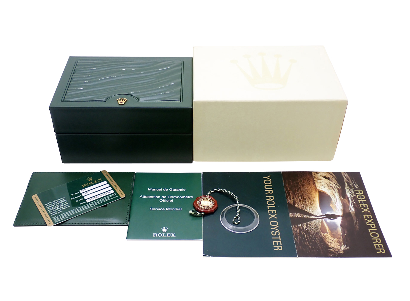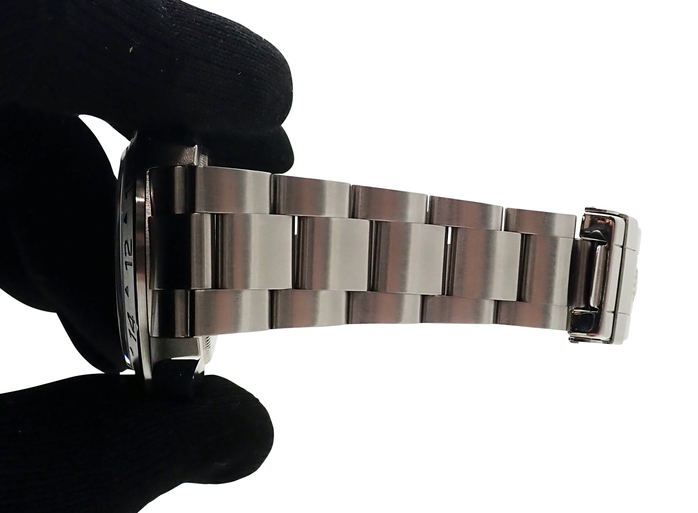 エクスプローラー2は日付表示、24時間針、24時間ベゼル、リューズガードなどを備え、エクスプローラー1からグレードアップしました。短針が単独で操作可能なGMT機能は操作もし易く機能的です。V番・ルーレット刻印あり。