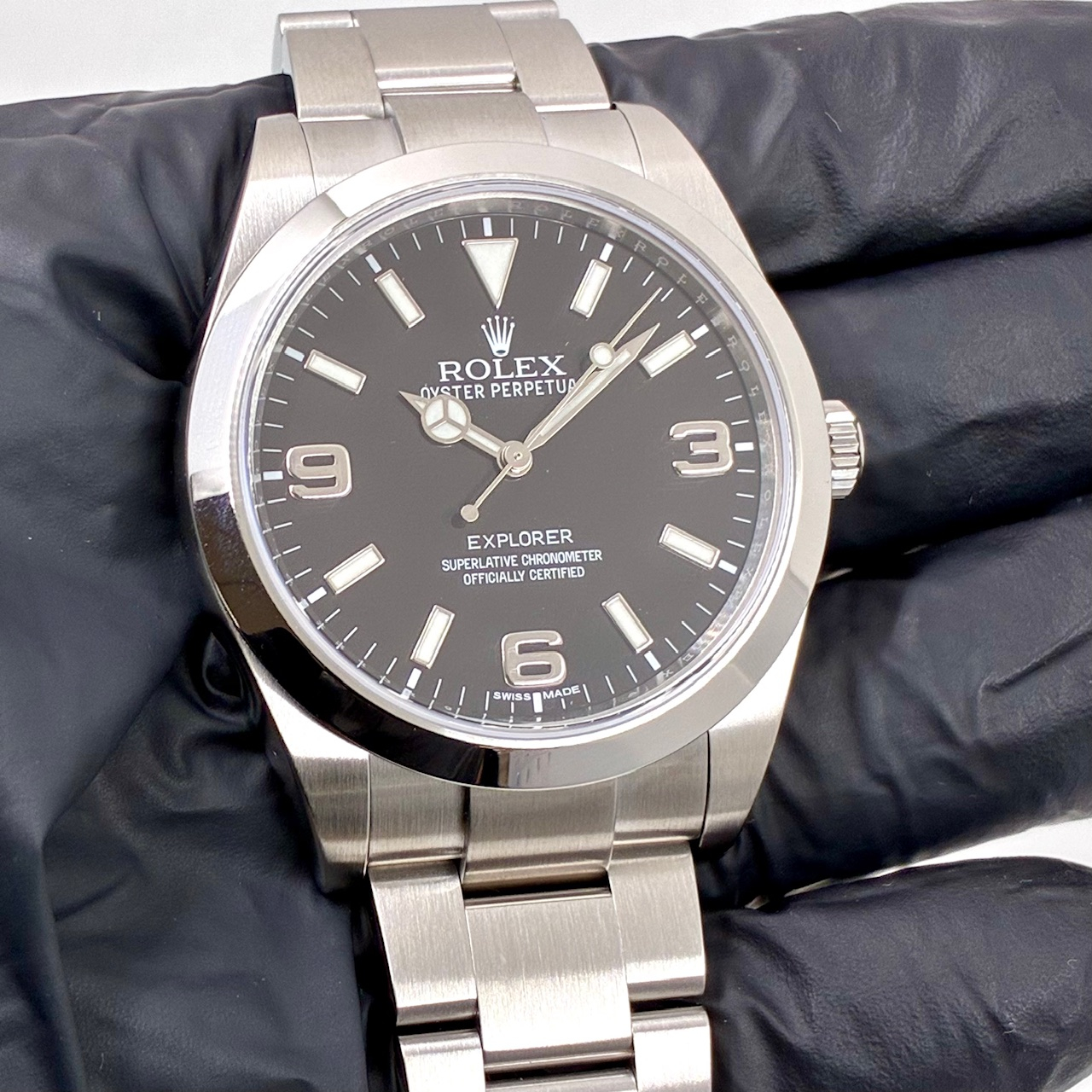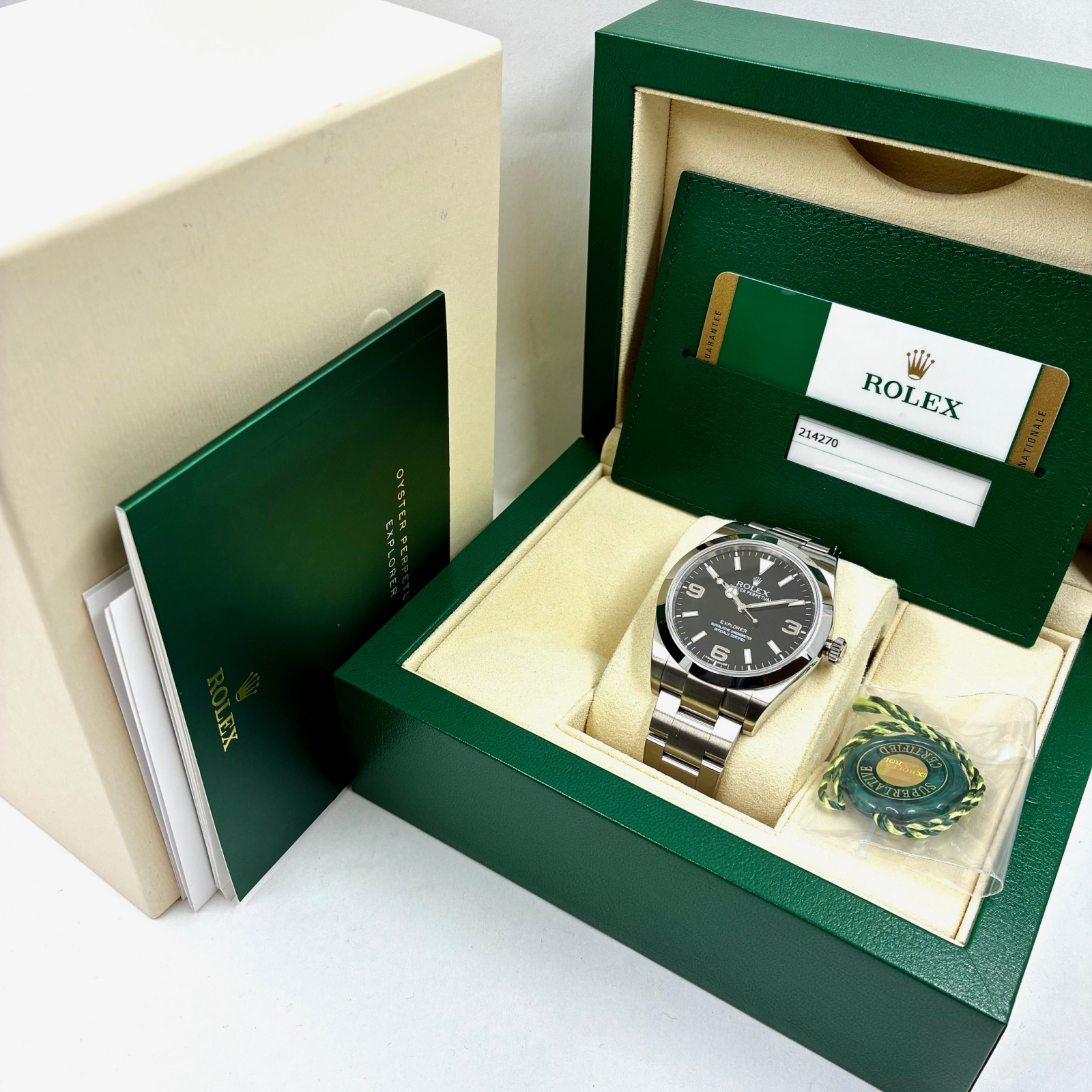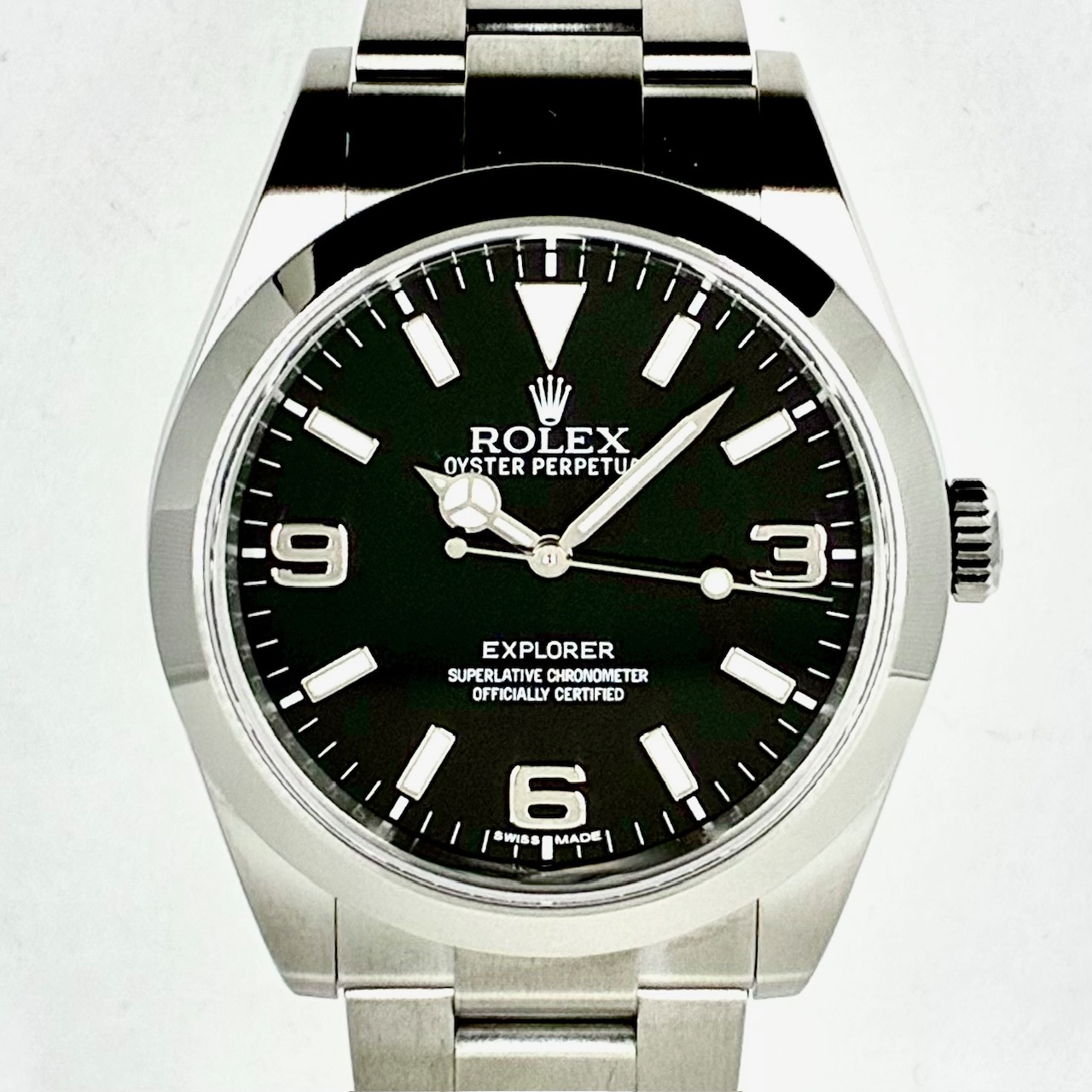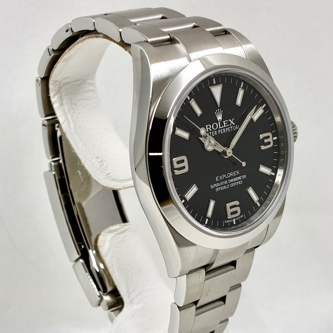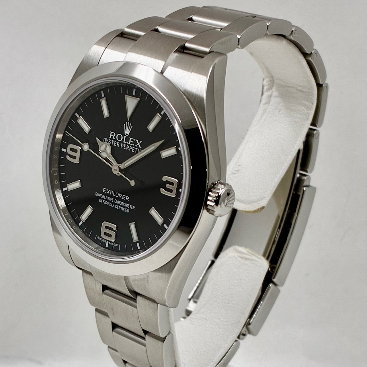 旧文字盤(ブラックアウト)のエクスプローラー39 214270 1年間のみ製造の鏡面バックルです。希少な39mmサイズ(過去にもこのモデル以外ないサイズ)。