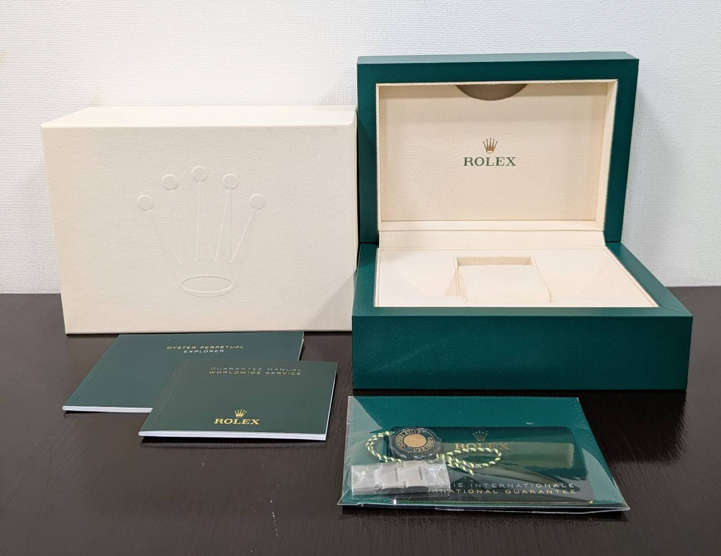 箱・保証書(2024年6月)・冊子・グリーンクロノメータータグ・コマ×2