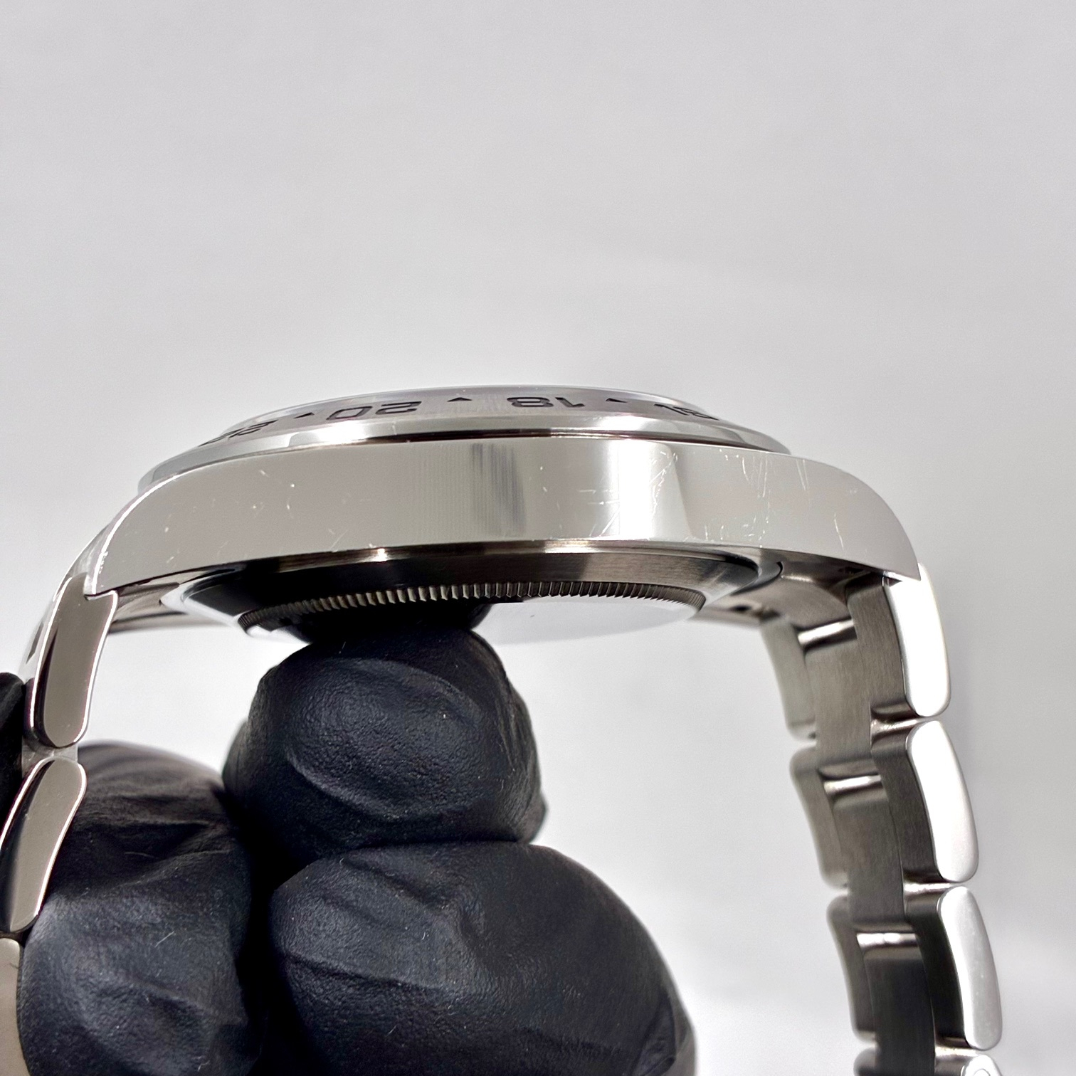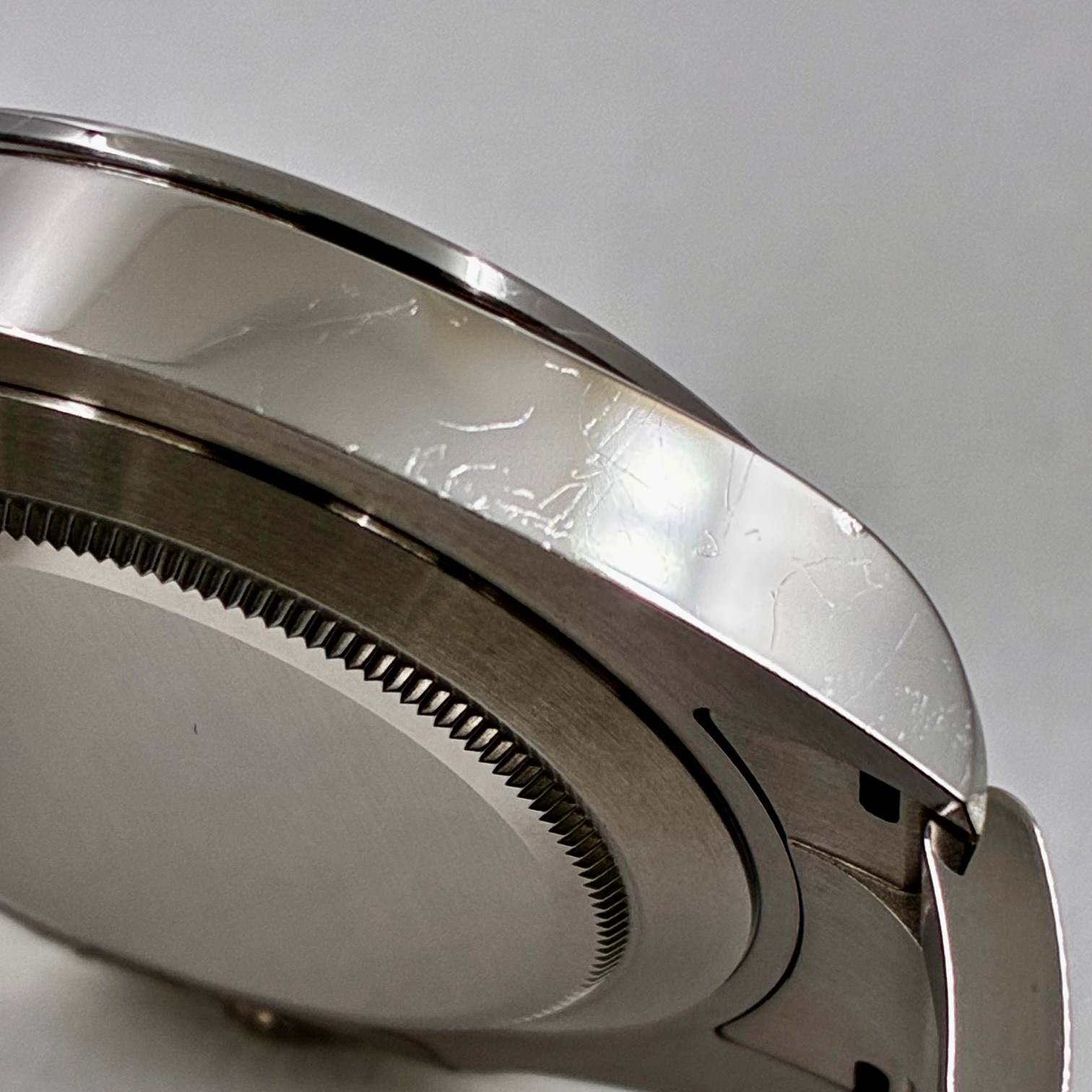 全体的にパキっとした美品なのですが、9時側のケースサイドには小さい細かいキズが複数あります。おそらくポリッシュで取れる程度だと思われますが、ワンオーナーであられる出品者様は磨きを行っておりません(購入後オーバーホール歴もございません)。