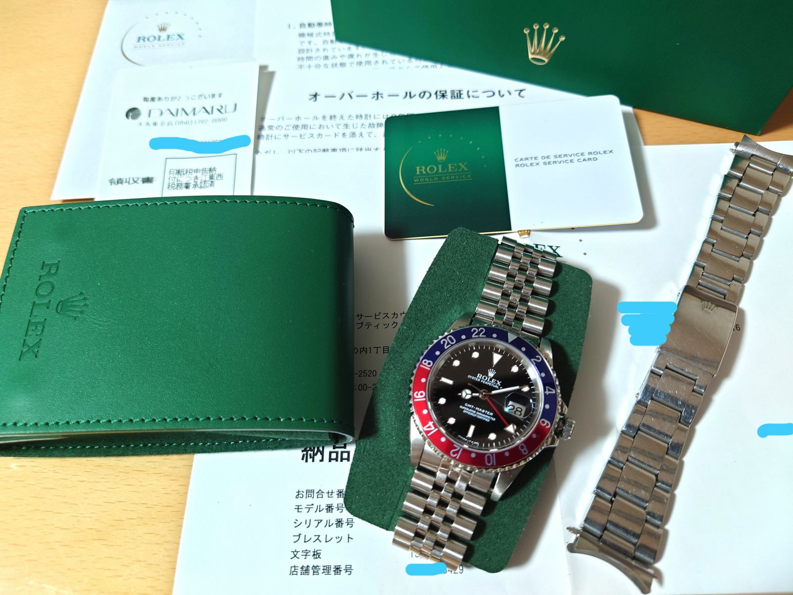 O/Hはロレックス正規店にて2025年5月に実施しておりますので、新型の国際サービス保証書となっております。