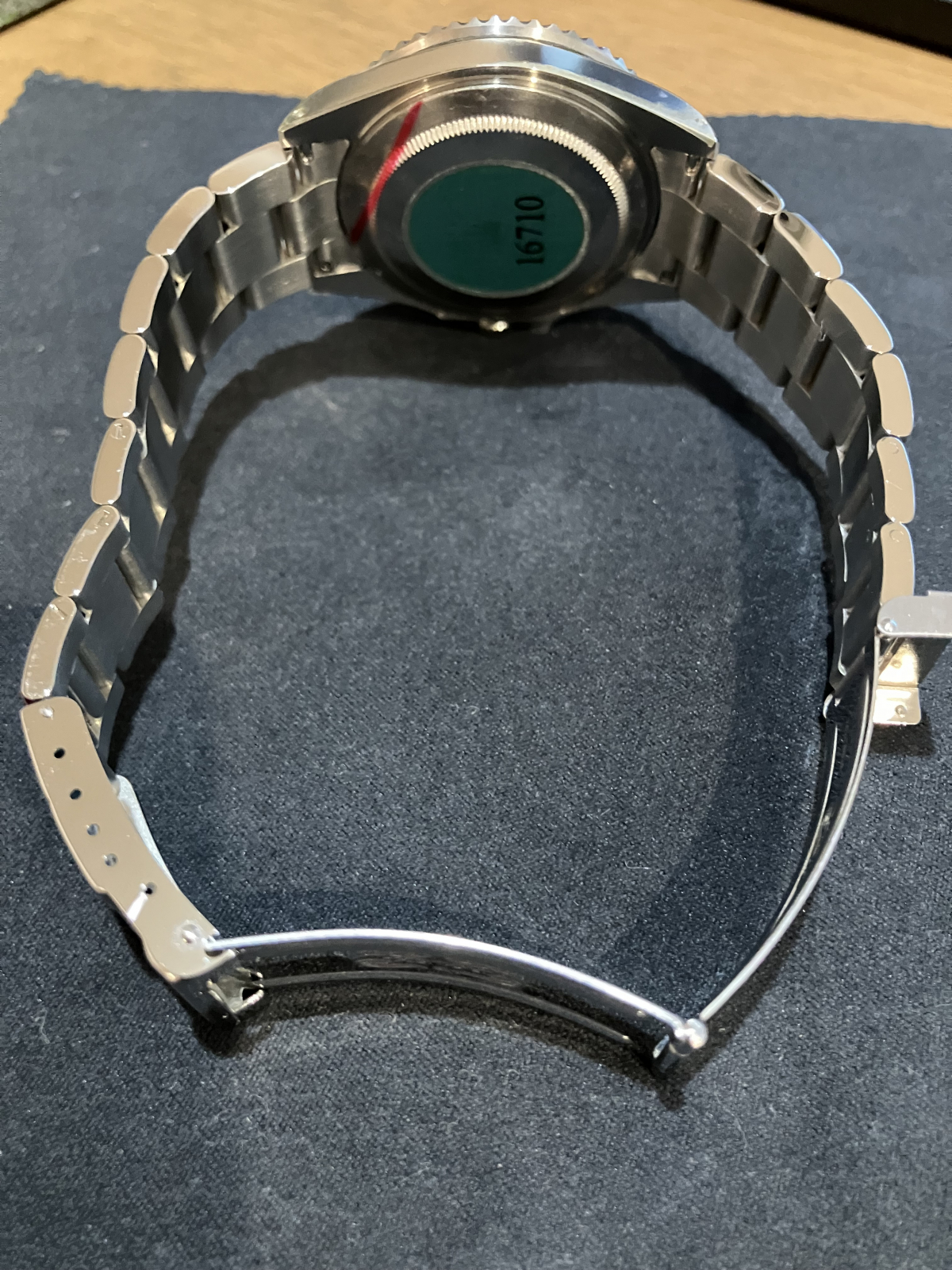 コレクション整理の為出品いたします。稼働しますが、もしお使いになるのであれば日本ロレックスにてオーバーホールをおすすめいたします。16710のデッドストックはマーケットで一点も確認できず大変稀少です。保証書が無いのが唯一のマイナスポイントですが、それ以外は申し分の無いオリジナルコンディションです。当方非喫煙者でペットもおりません。クリーンで状態の良いデッドストックをお探しの方はご検討下さい。