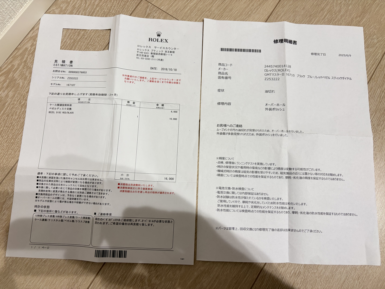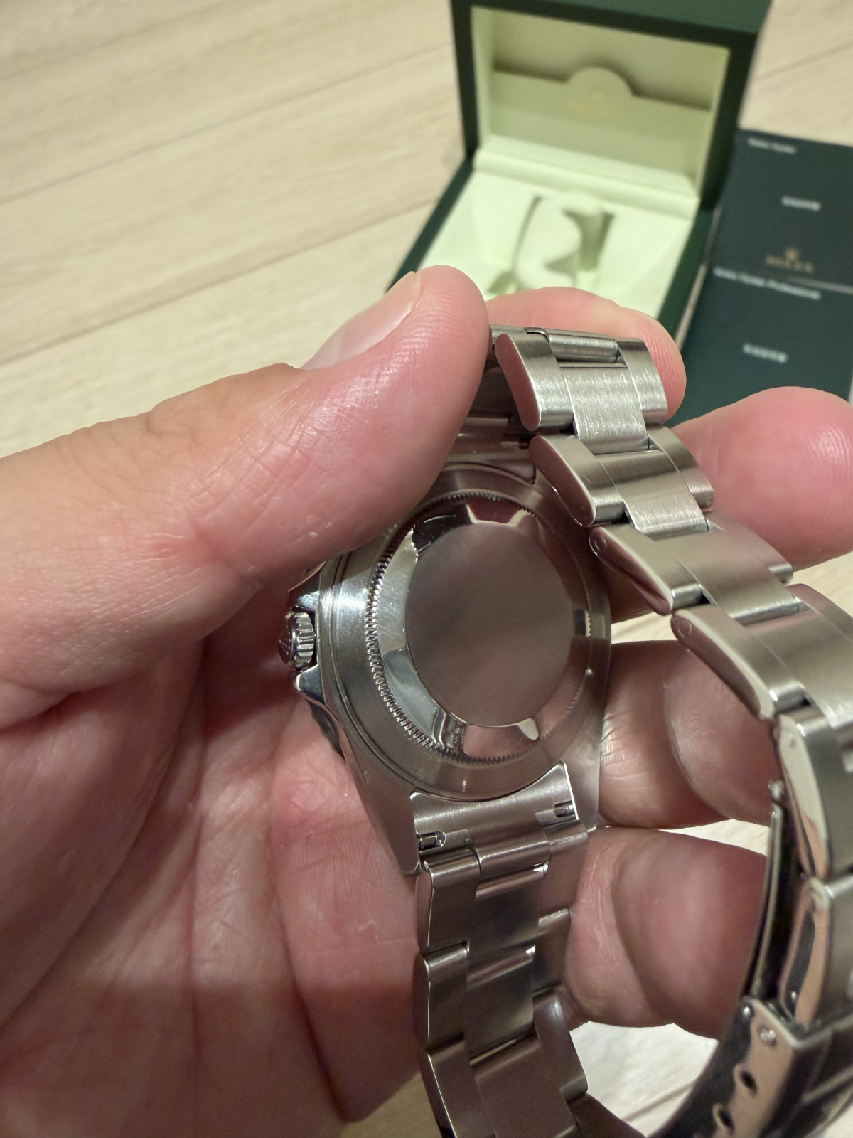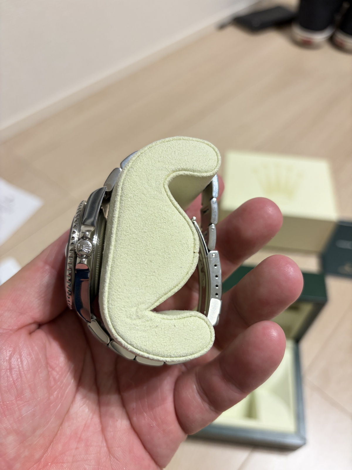 珍しいスティックダイヤルのGMTマスター2です。保証書はありませんが、ロレックスの修理の見積書などはあり、買取店でも一度査定してますので安心の本物です。購入場所はカメラのキタムラさんで中古で購入してますのでそちらの保証書もあります!某販売サイトで同じ16710のスティックダイヤルの本体のみで200万越えで販売されてるものもあり、お得な値段設定になってると思います!私がこれを購入した金額より安く出品しております。購入したのは今年なので使用頻度も低めです。