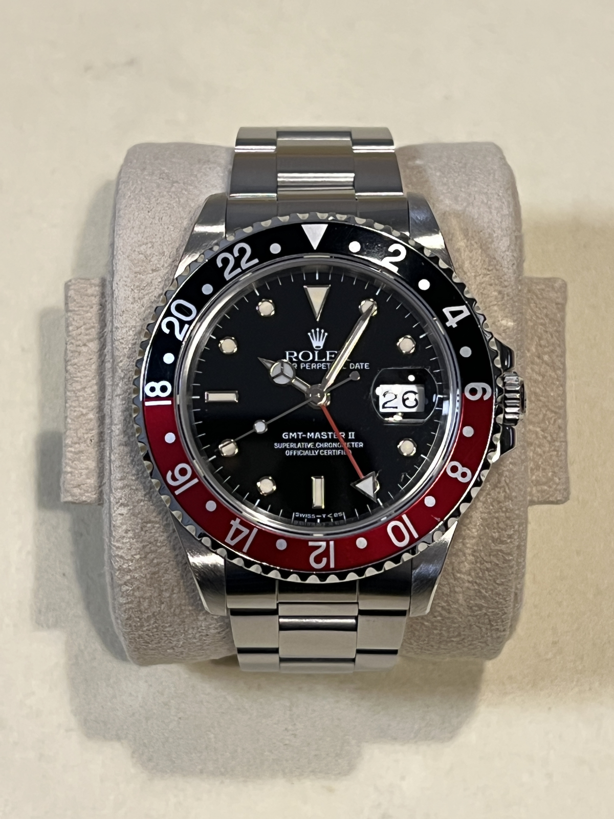 今はなきGMT MasterⅡの赤黒ベゼル。ベゼルのカラーも綺麗に残っている良個体です。