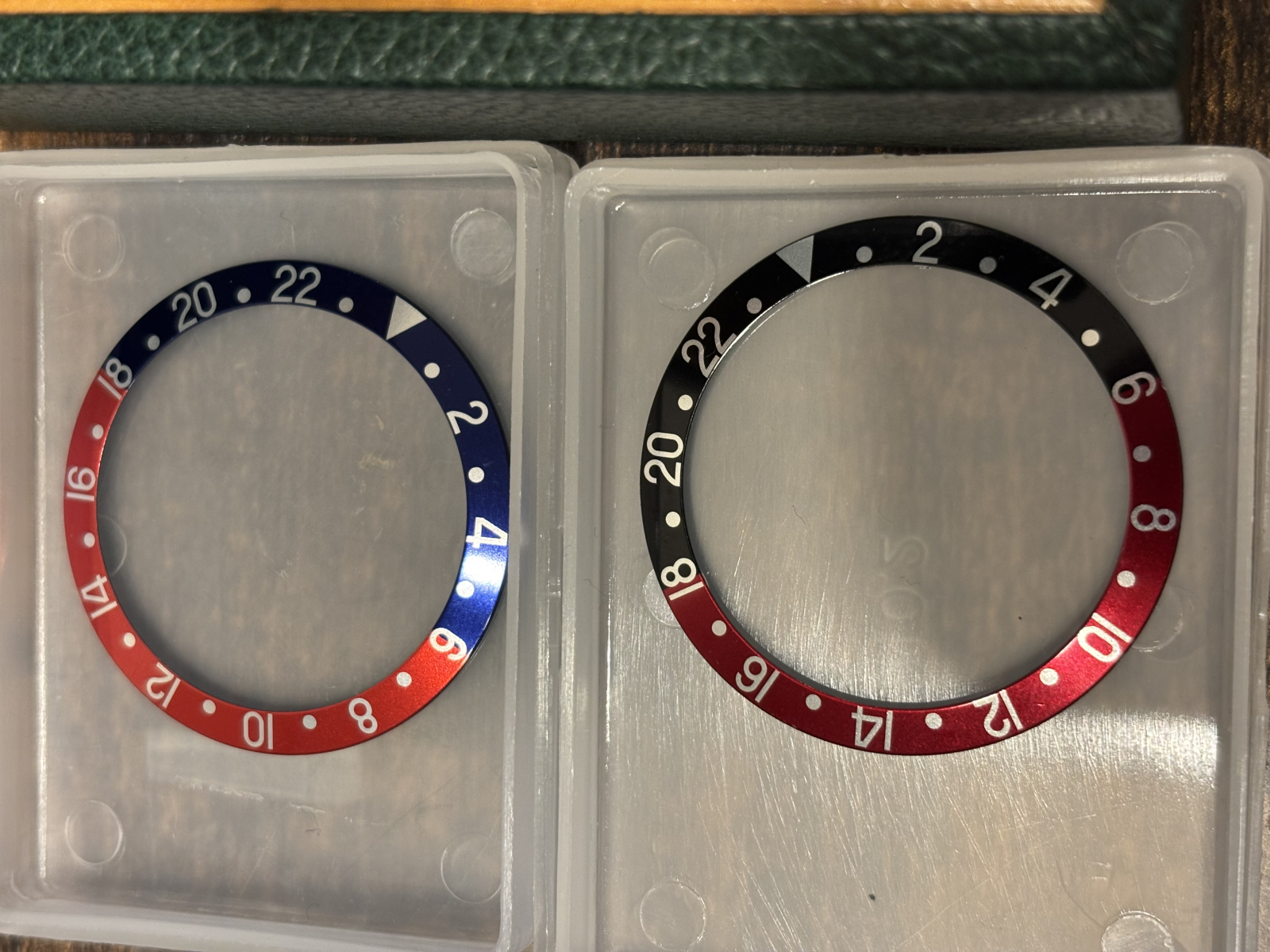 元々ペプシベゼルで、コークベゼルに交換して正規店でジュビリーブレス交換しています。黒黒ベゼルは写真のように傷が結構入ってますが、他のベゼルは綺麗な状態だと思います。今は黒黒ベゼルの状態ですが、好きなベゼルに交換して送ります。