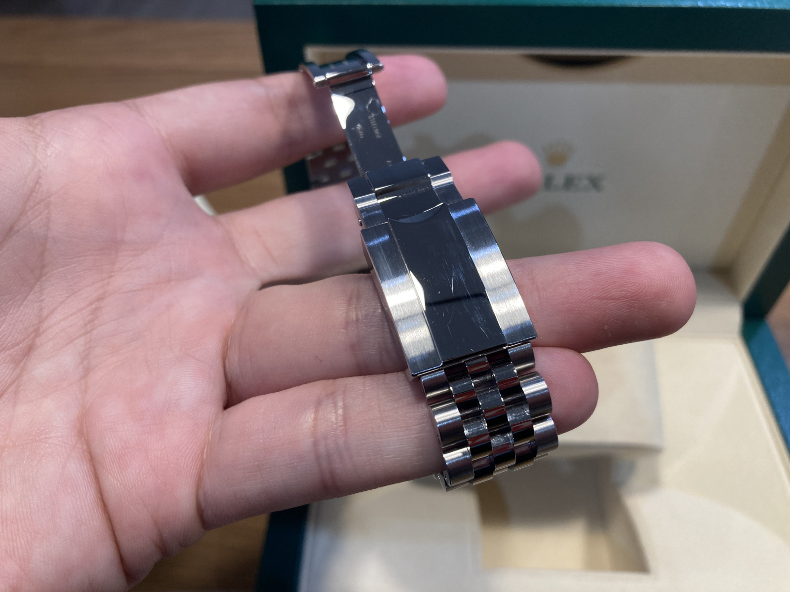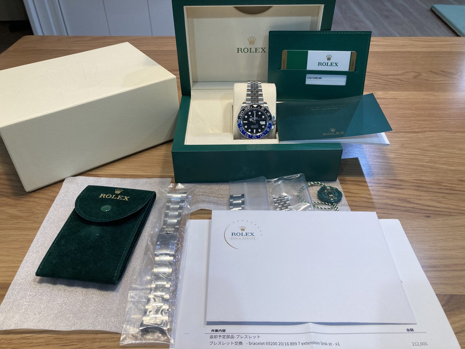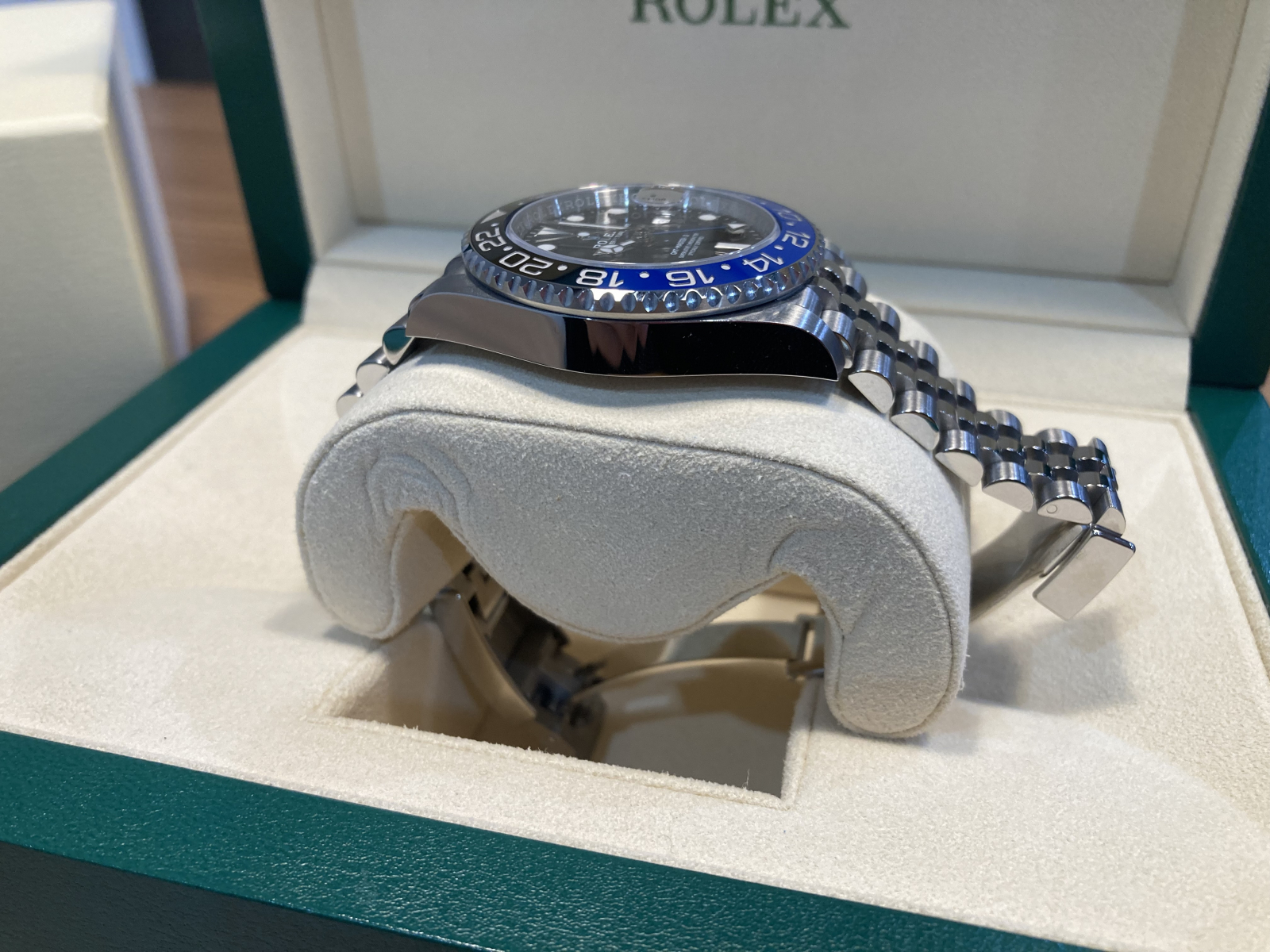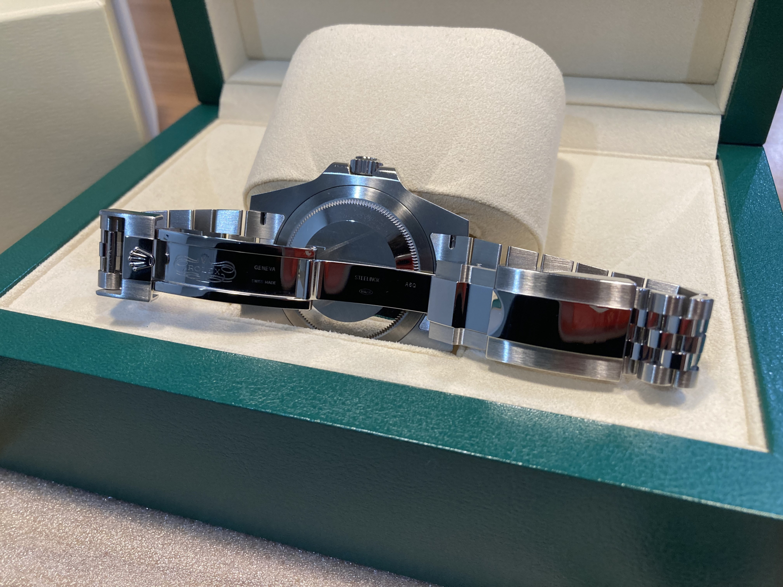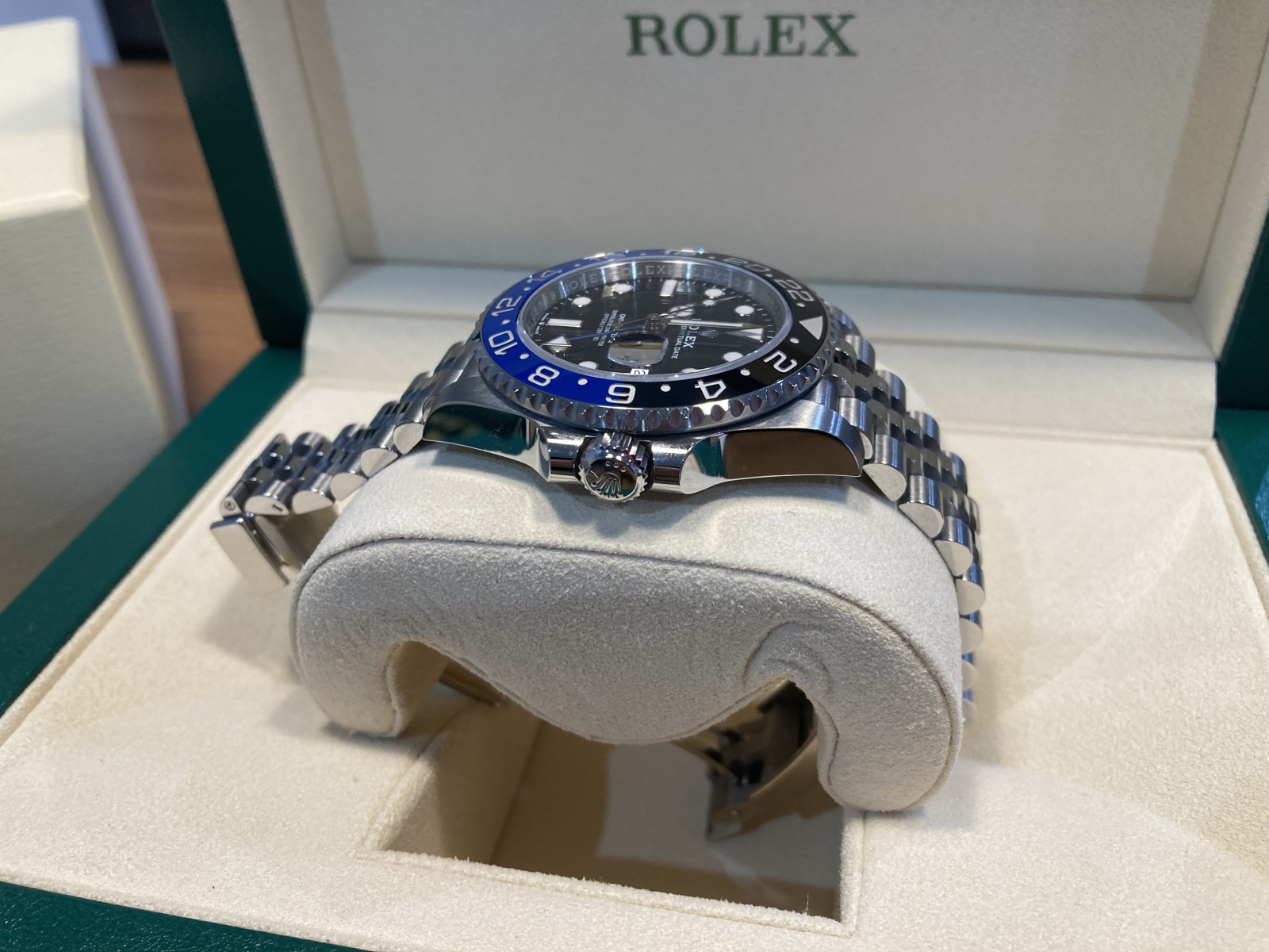 人気カラーリングの青黒ベゼル、通称『バットマン』のジュビリーブレス仕様です、が今回オイスターブレスも付属します。