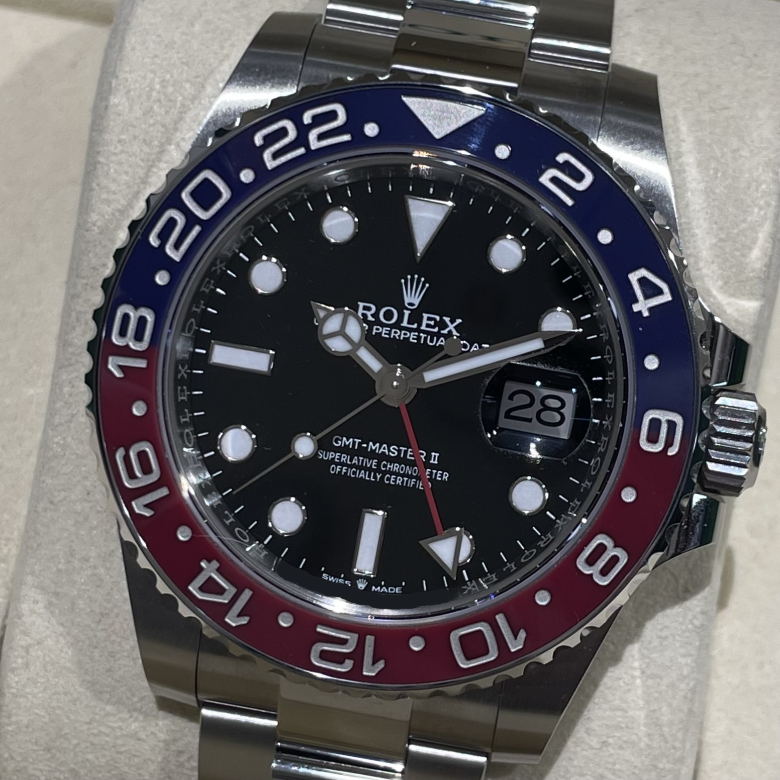 GMTマスター2の中でも通称【ペプシ】と呼ばれる赤×青ベゼルは人気が非常に高く、