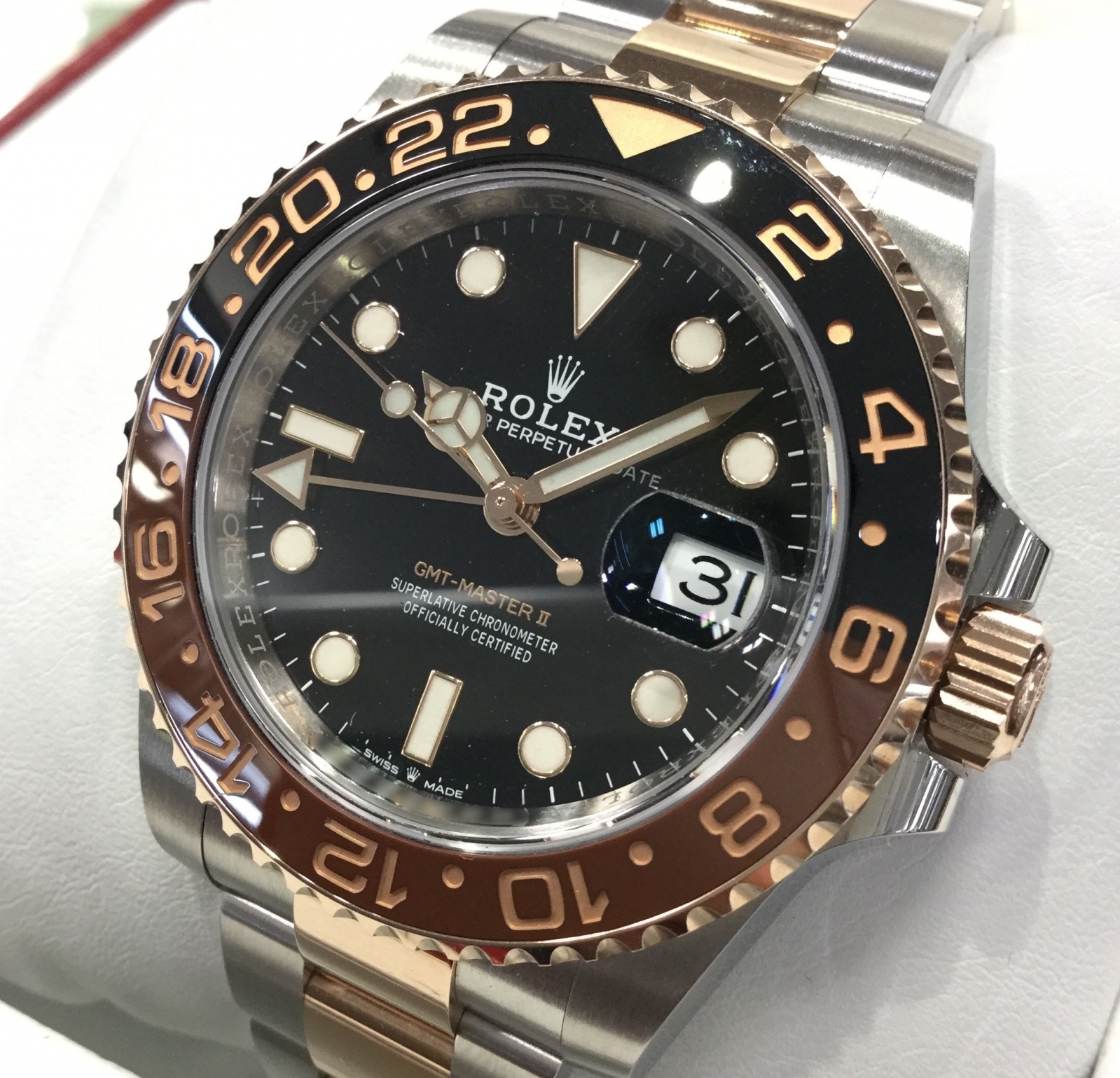人気のGMTマスターⅡローズゴールドコンビが入荷しました。