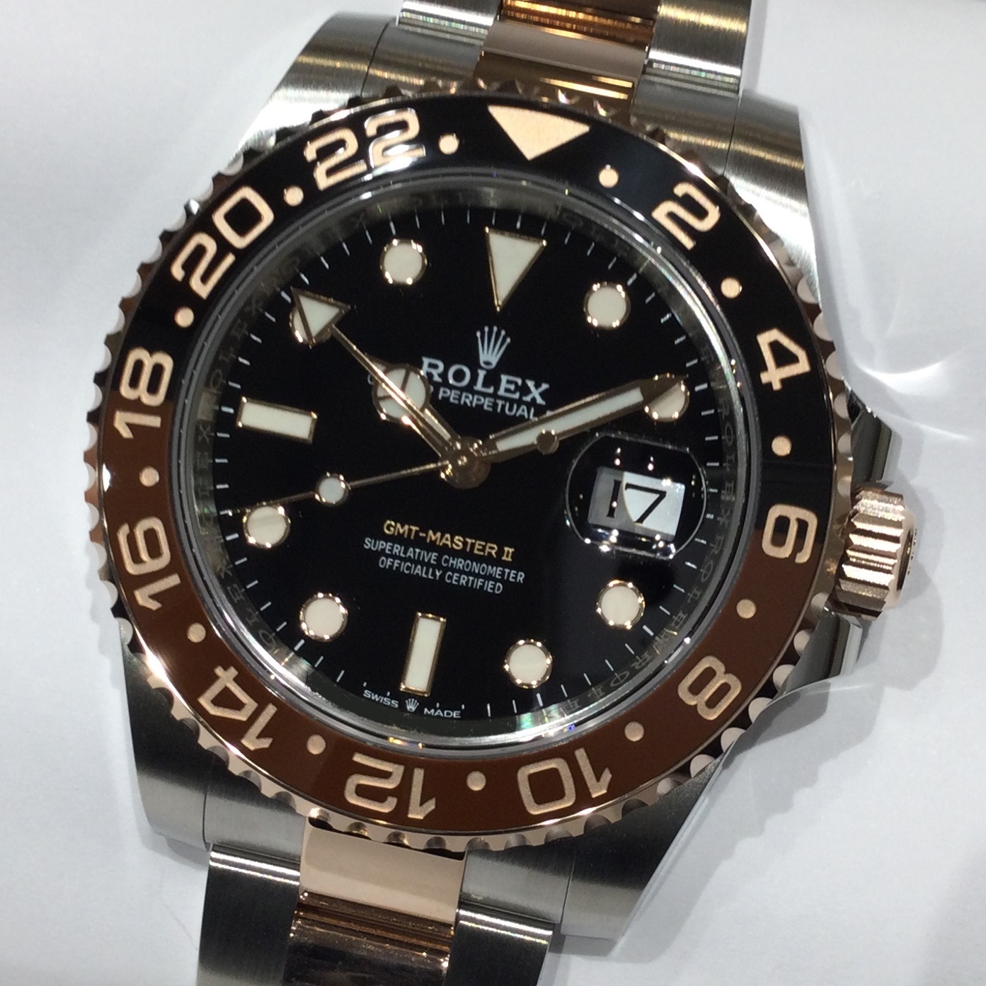 GMTマスターの中でもエレガントな雰囲気を味わえる、人気の 126711CHNR (PGコンビ)が入荷しました。ブラックとブラウンを配した2色使いのベゼルが絶妙なカラーリングの人気モデルです。高級感とスポーティーさを兼ね備えたGMTマスターを是非ご検討下さい。