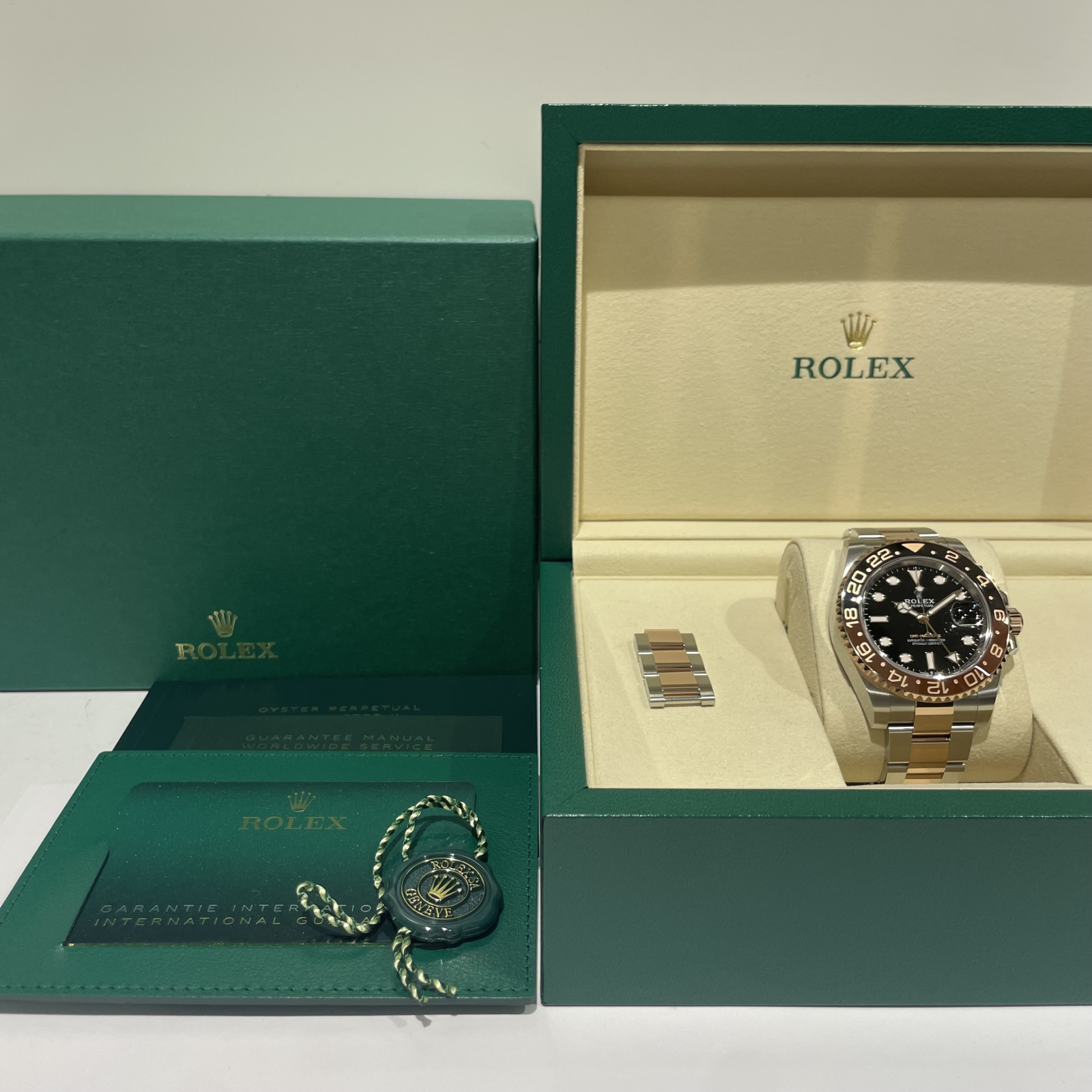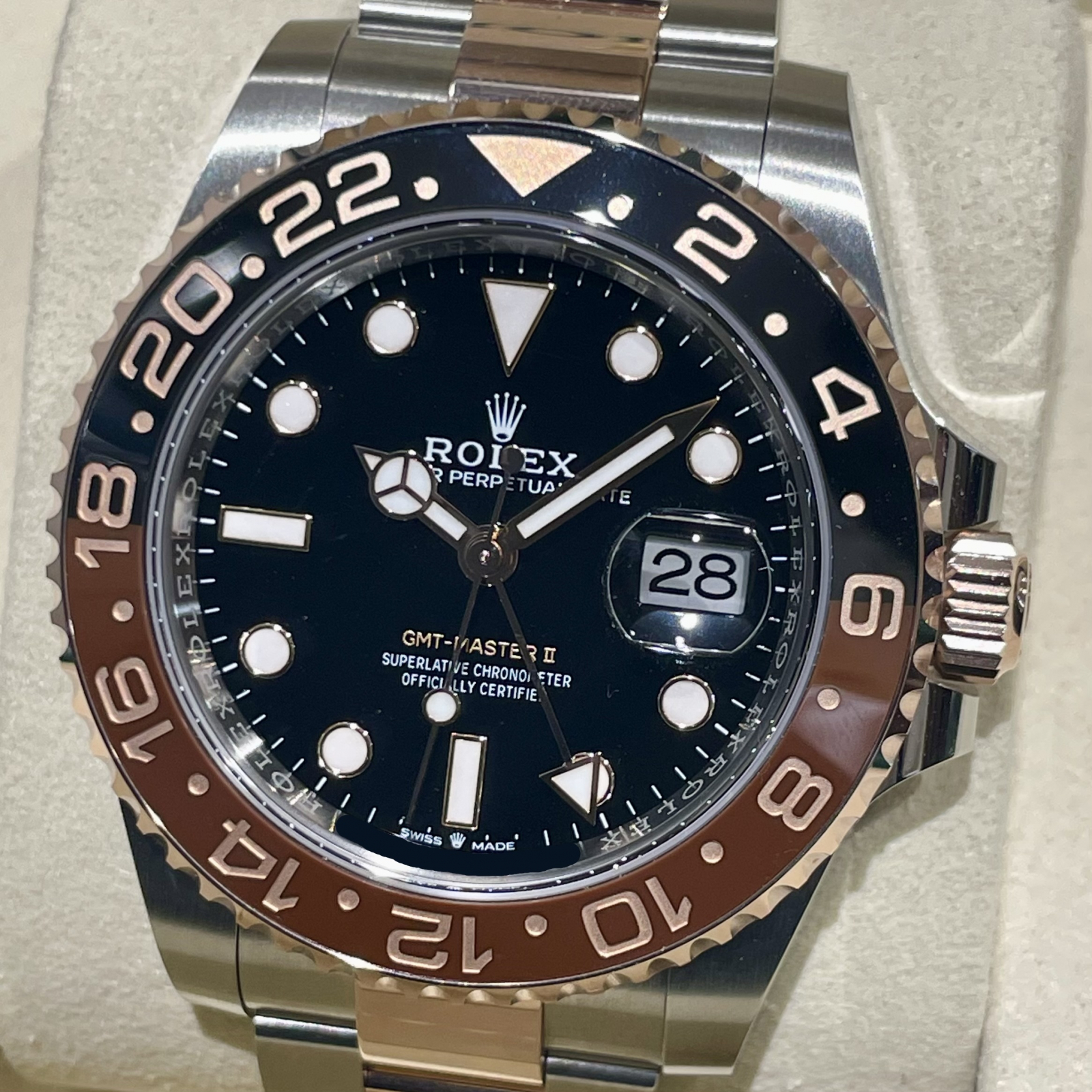GMTマスターの中でもエレガントな雰囲気を味わえる、人気の 126711CHNR (PGコンビ)が入荷しました。ブラックとブラウンを配した2色使いのベゼルが絶妙なカラーリングの人気モデルです。高級感とスポーティーさを兼ね備えたGMTマスターを是非ご検討下さい。