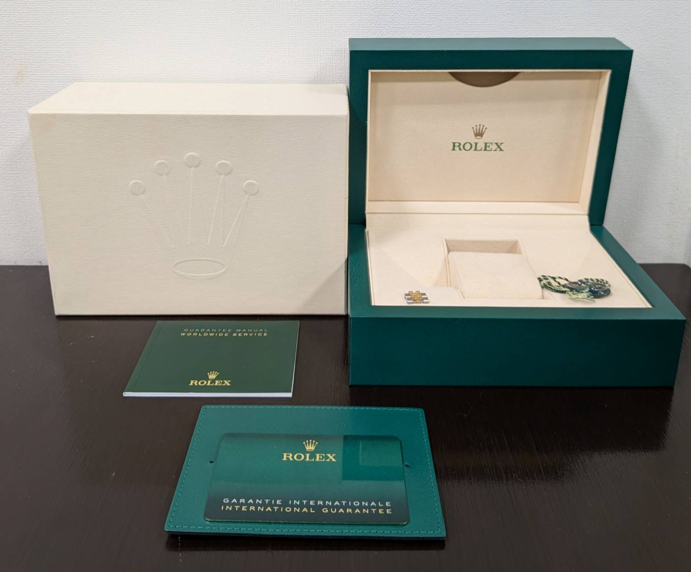 箱・保証書(2022年4月)・冊子・グリーンクロノメータータグ・コマ×2