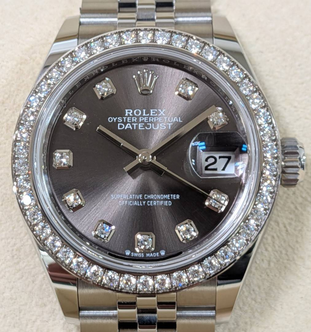 ロレックス デイトジャスト28 279384RBR ダークグレー文字盤 ダイヤモンドベゼル 中古美品 12046889