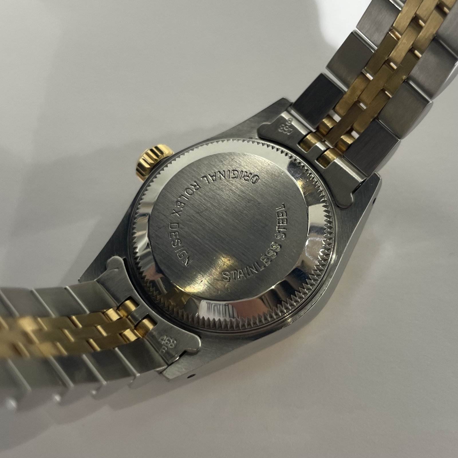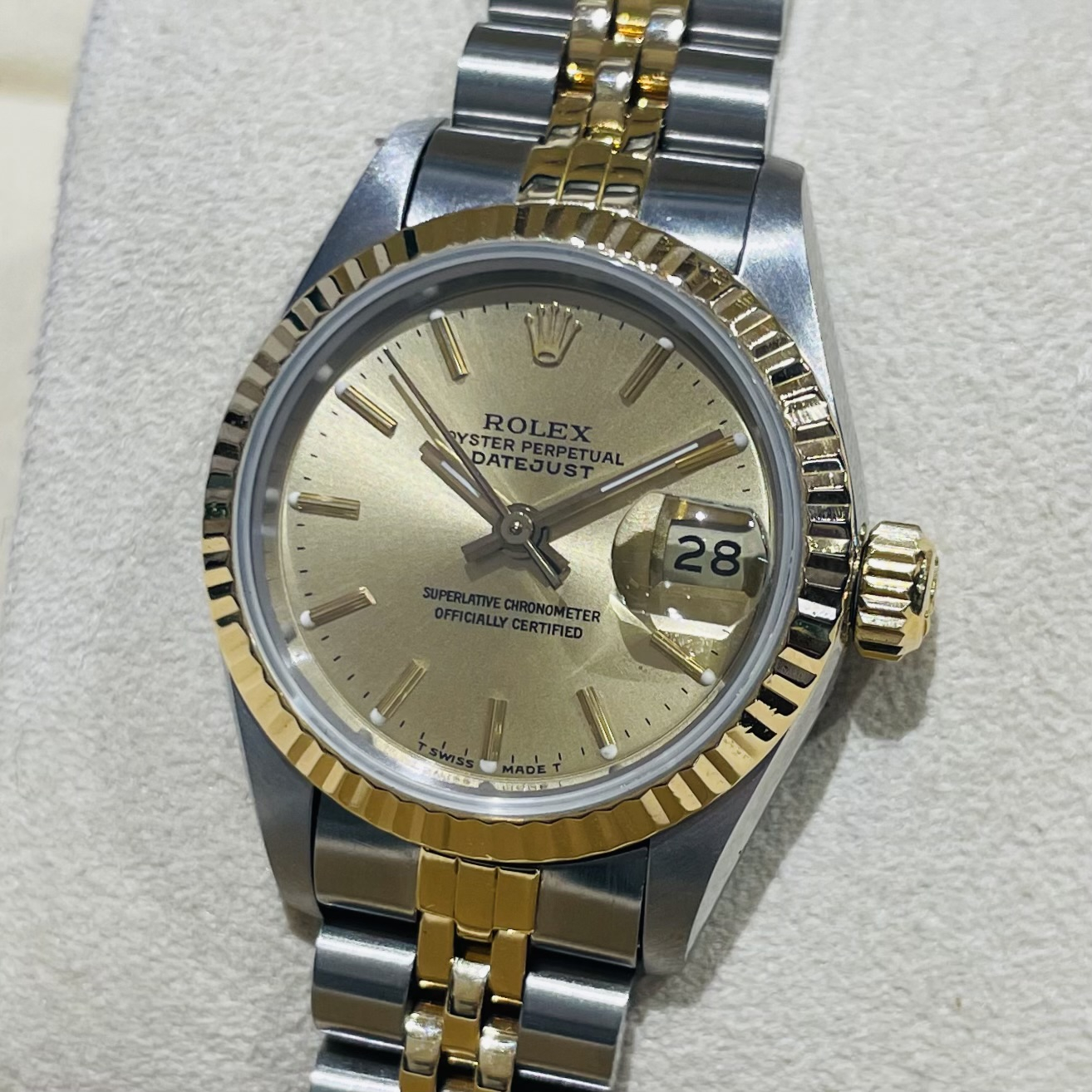 ロレックスのレディースモデルで定番な、シャンパンゴールド文字盤のコンビネーションモデルとなります。
