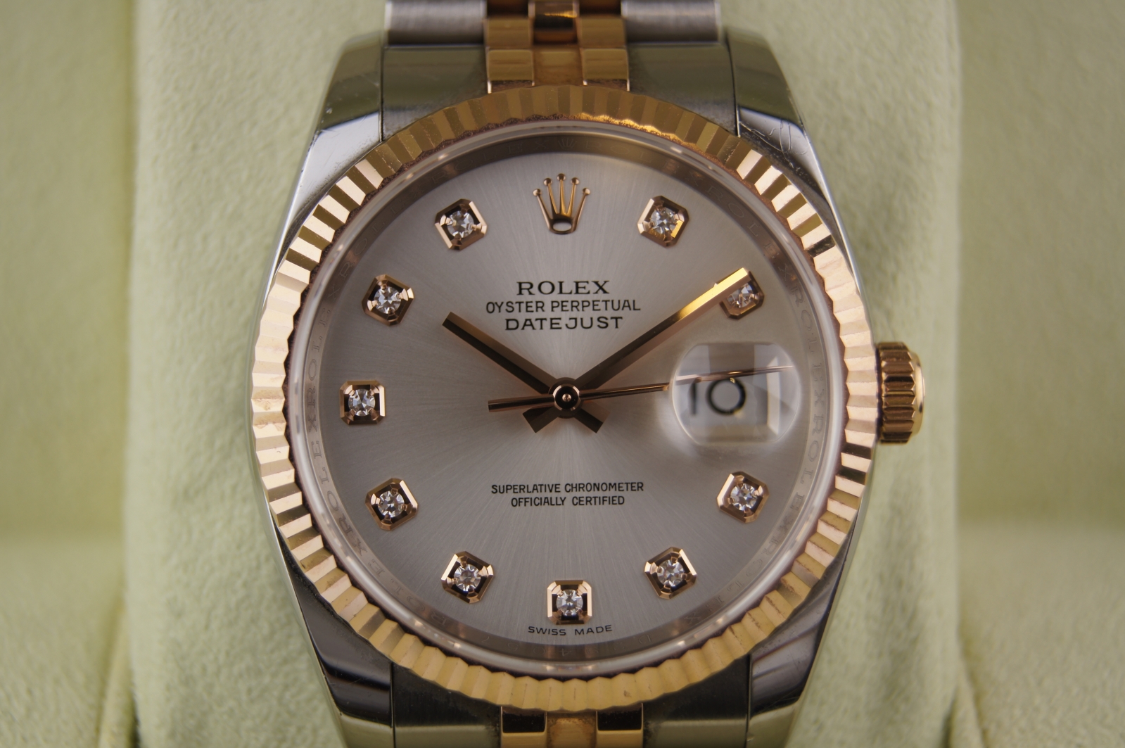 【現金特価】ロレックス 116231G D番 10Pダイヤ PG×SS シルバー文字盤