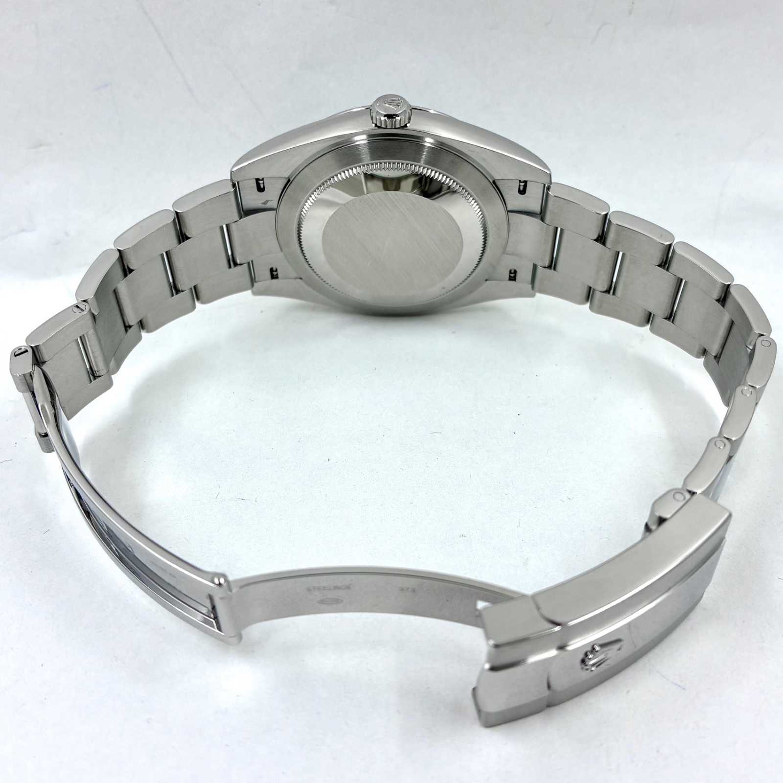 非常にキレイな状態のデイトジャスト41です。人気のブライトブルーダイヤル、オイスターブレスレット、スムースベゼルの組み合わせです。10倍ルーペで見ても気にならないくらいキズなどはほぼありません。本当にわずかなスレキズがある程度です。