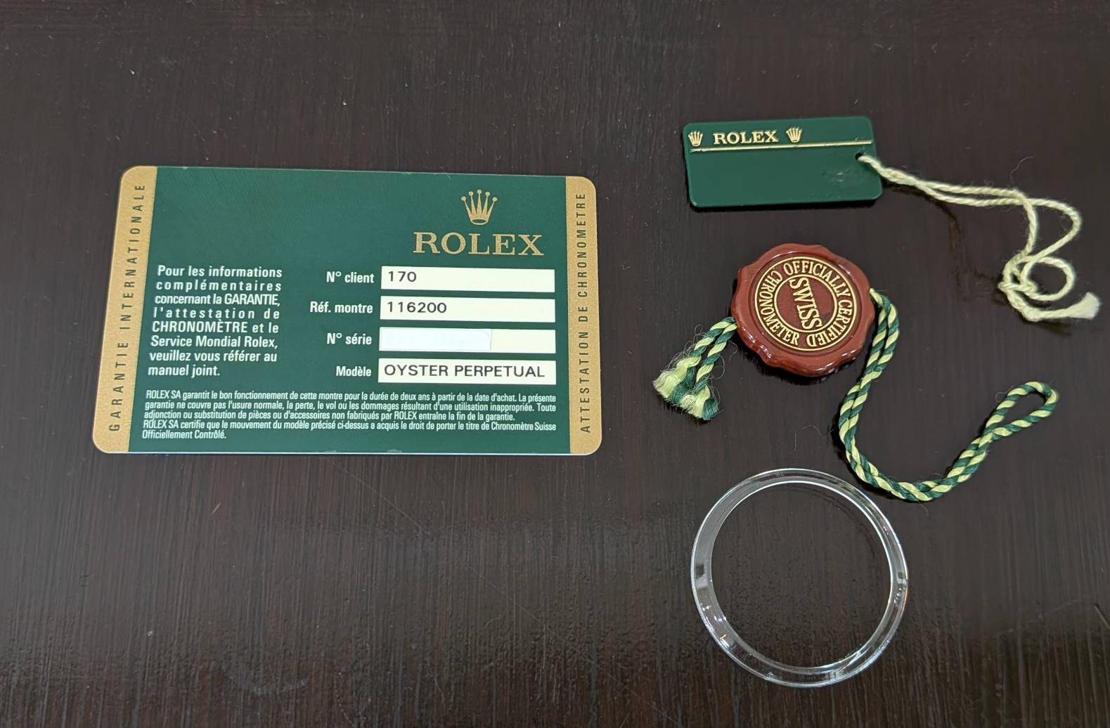 保証書(2012年11月)・レッドクロノメータータグ・グリーンプライスタグ・ベゼルカバー
