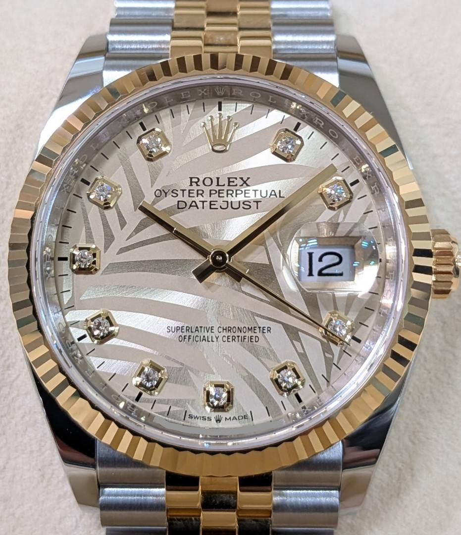 ロレックス デイトジャスト36 126233G ランダム番 ゴールデンパーム 10PD文字盤 自動巻 美品 11957737