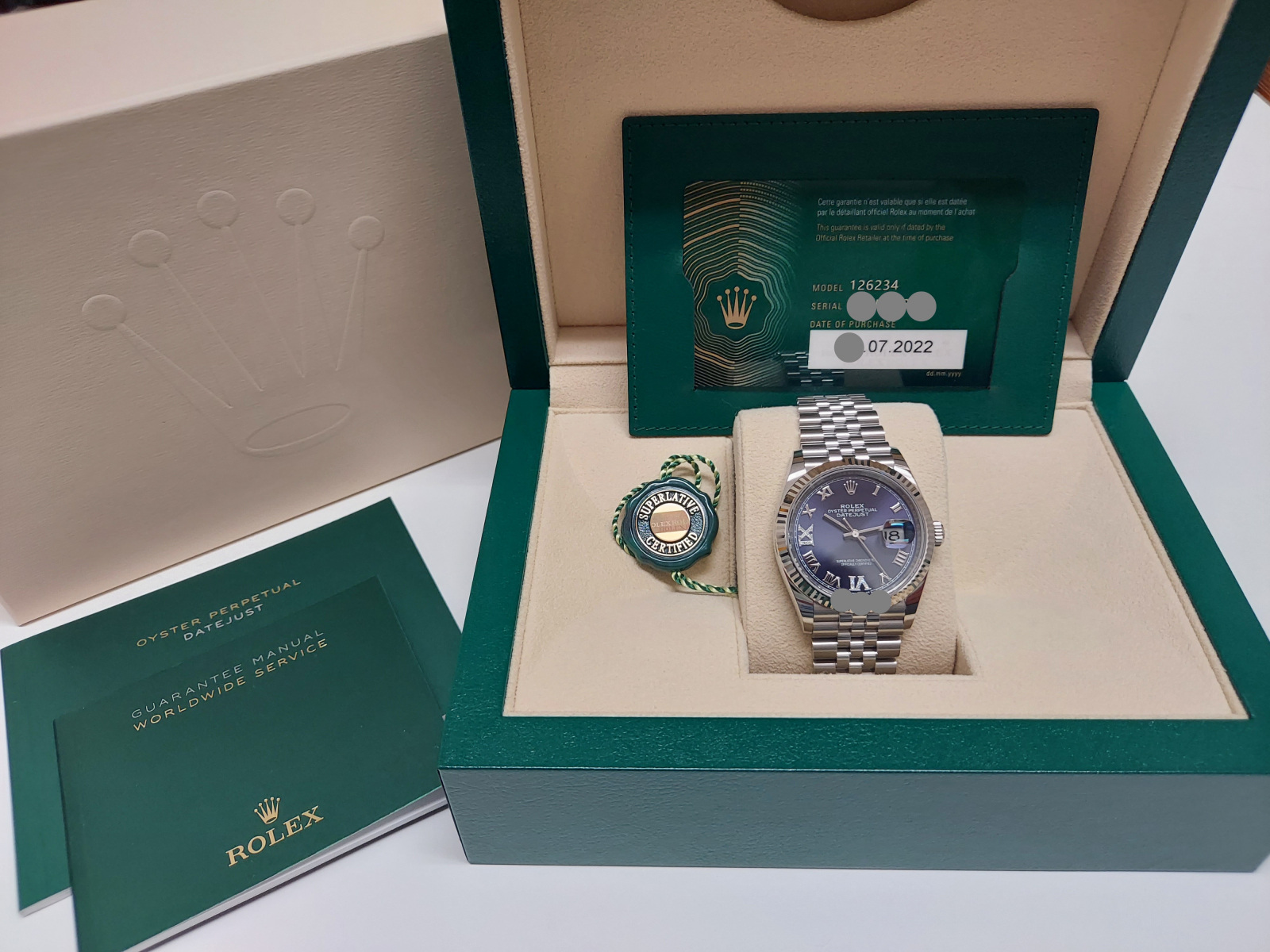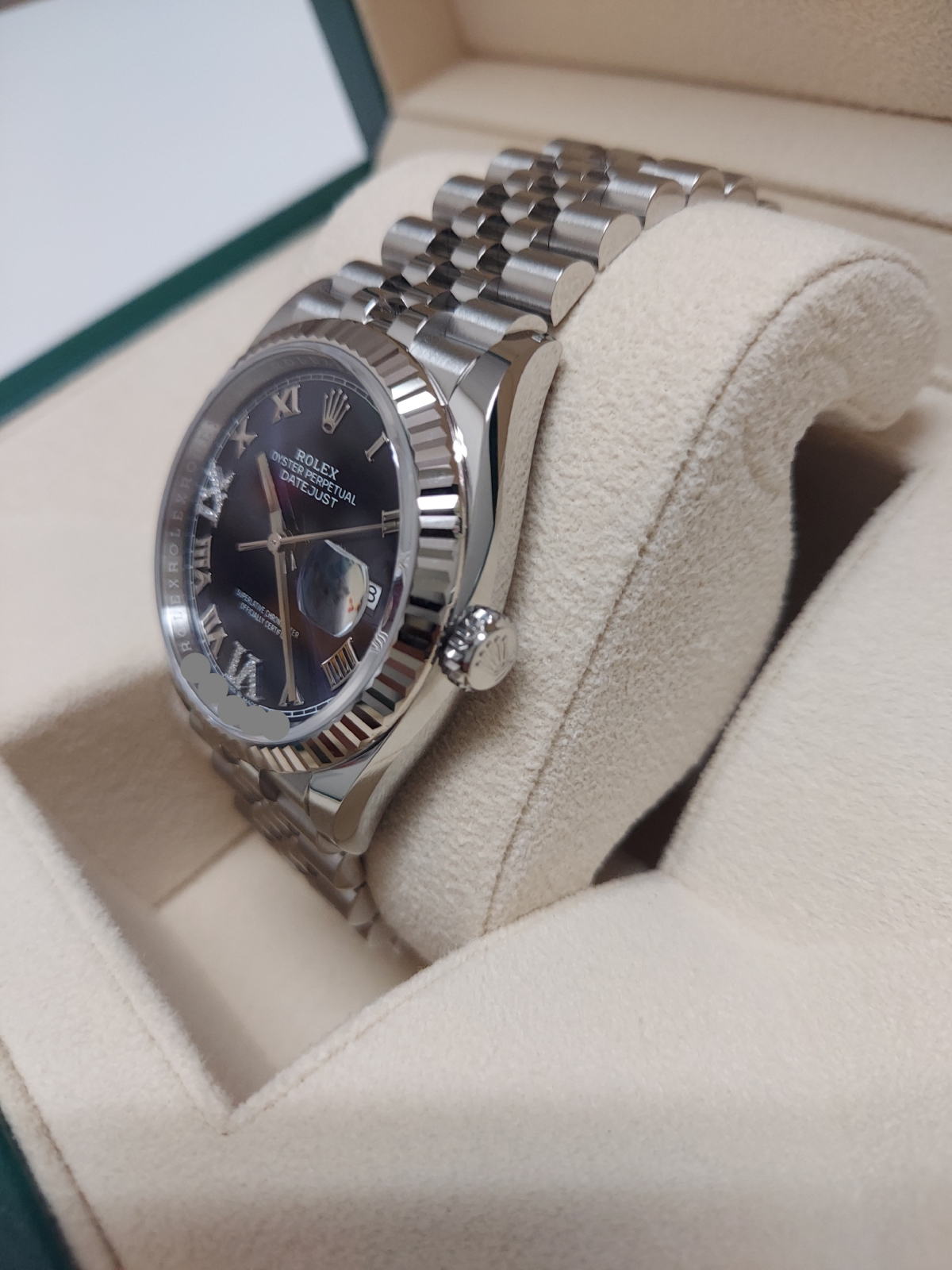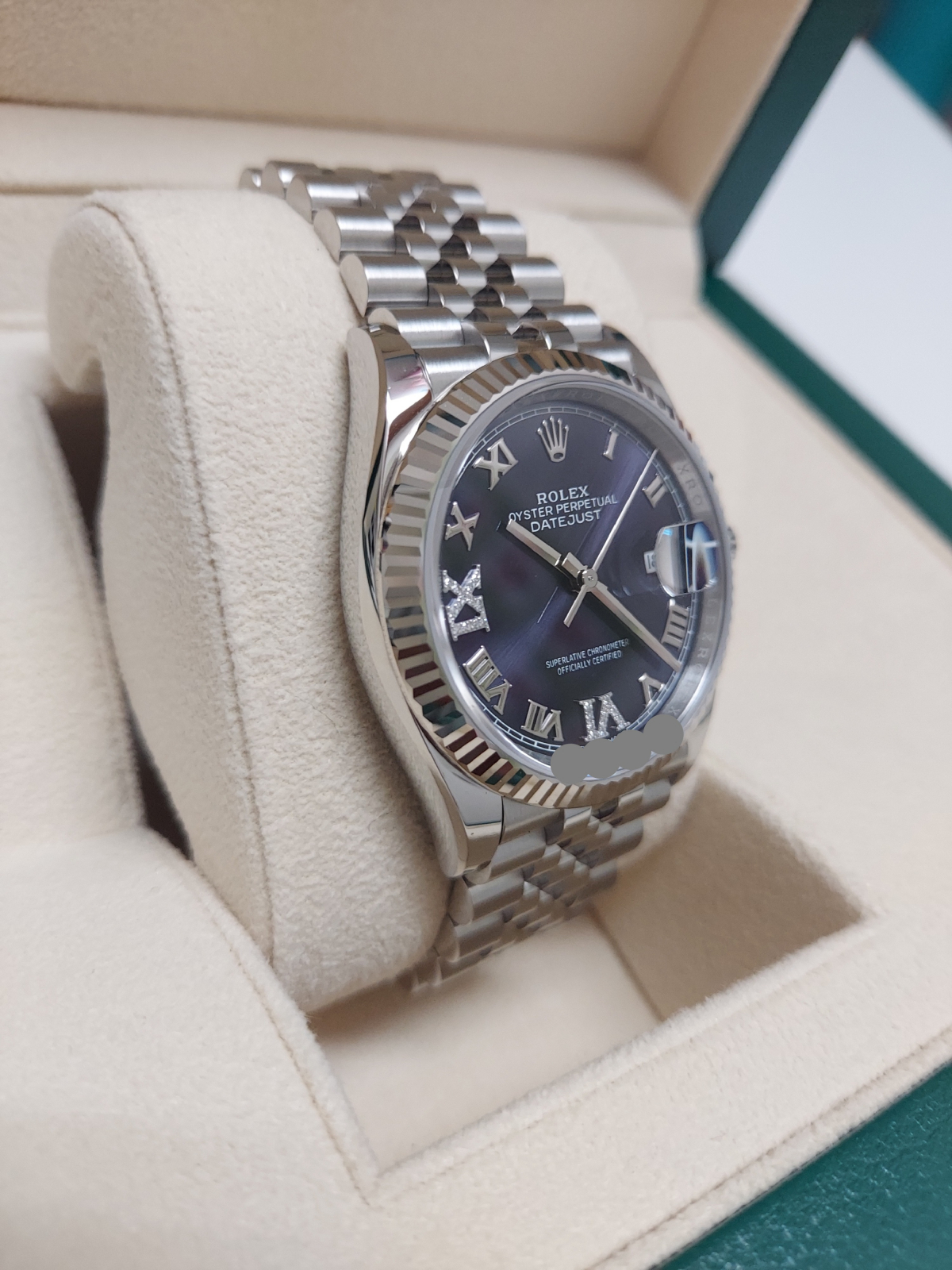 【未使用】 ロレックス デイトジャスト 36 126234 オーベルジーヌ ローマ VI&IXダイヤ SS×WG