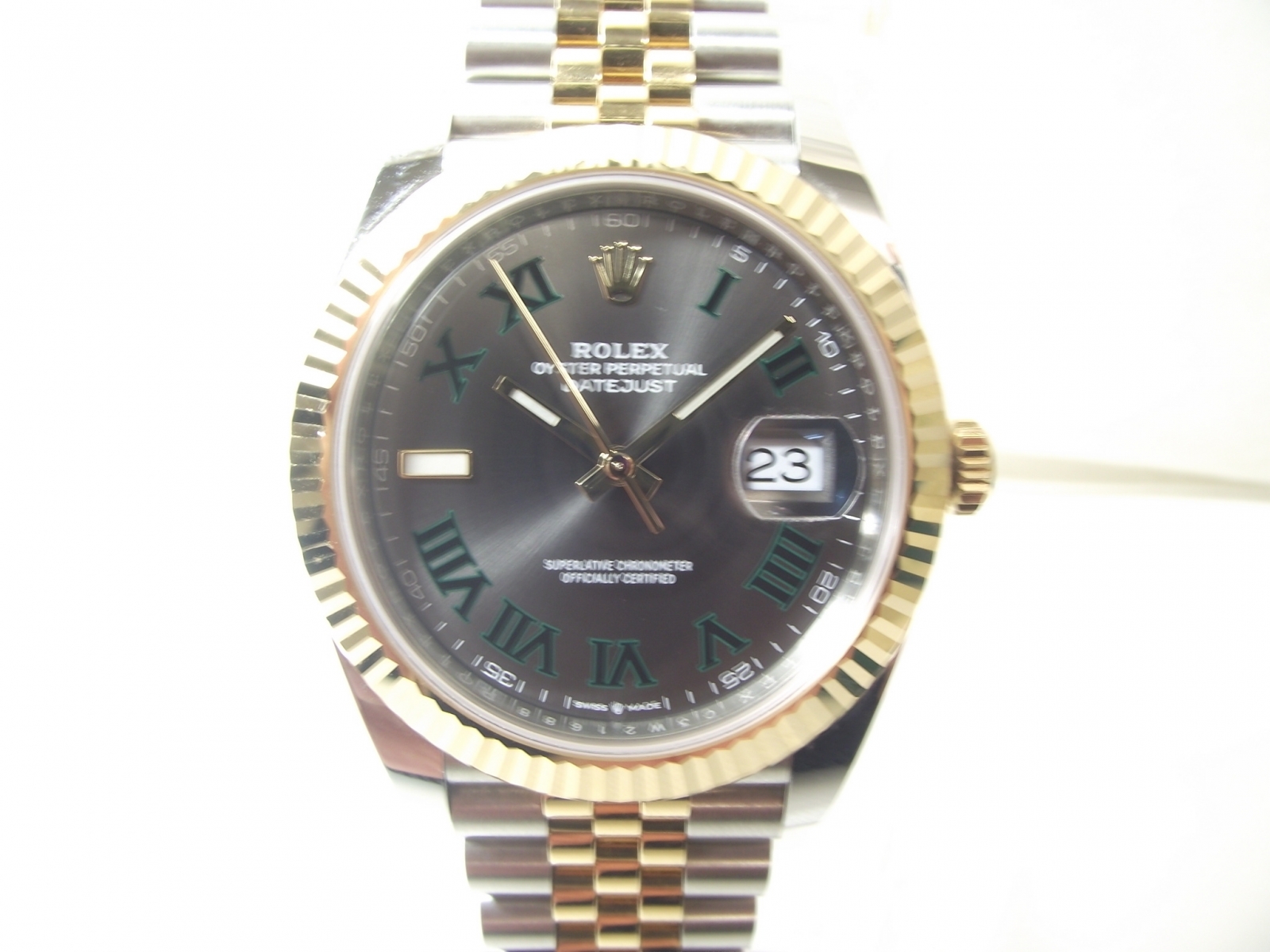 【現金特価】ロレックス デイトジャスト41 126333 SS×YG グレーグリーンローマ文字盤 ランダム番 メンズ 自動巻 中古AB