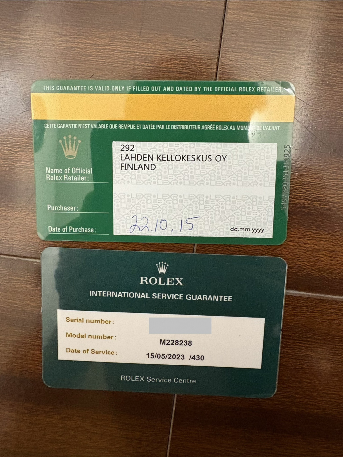 国際サービス保証書(2023年ロレックス正規店でオーバーホール)