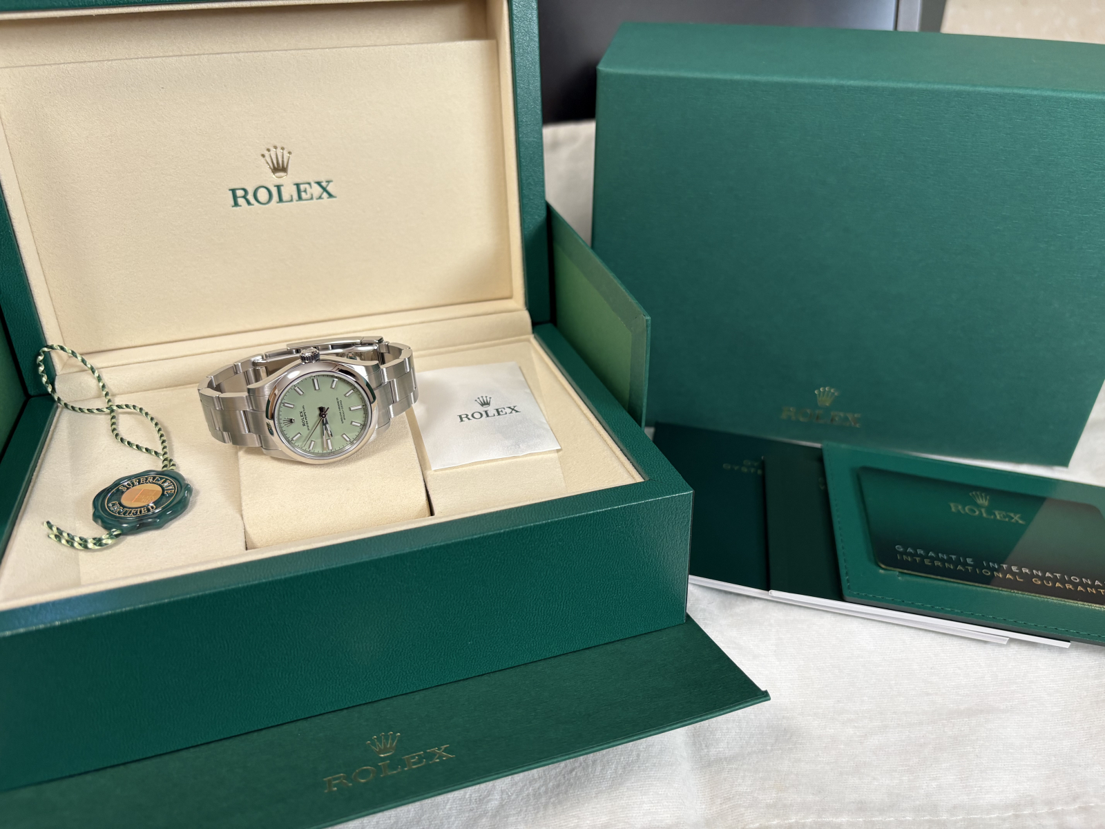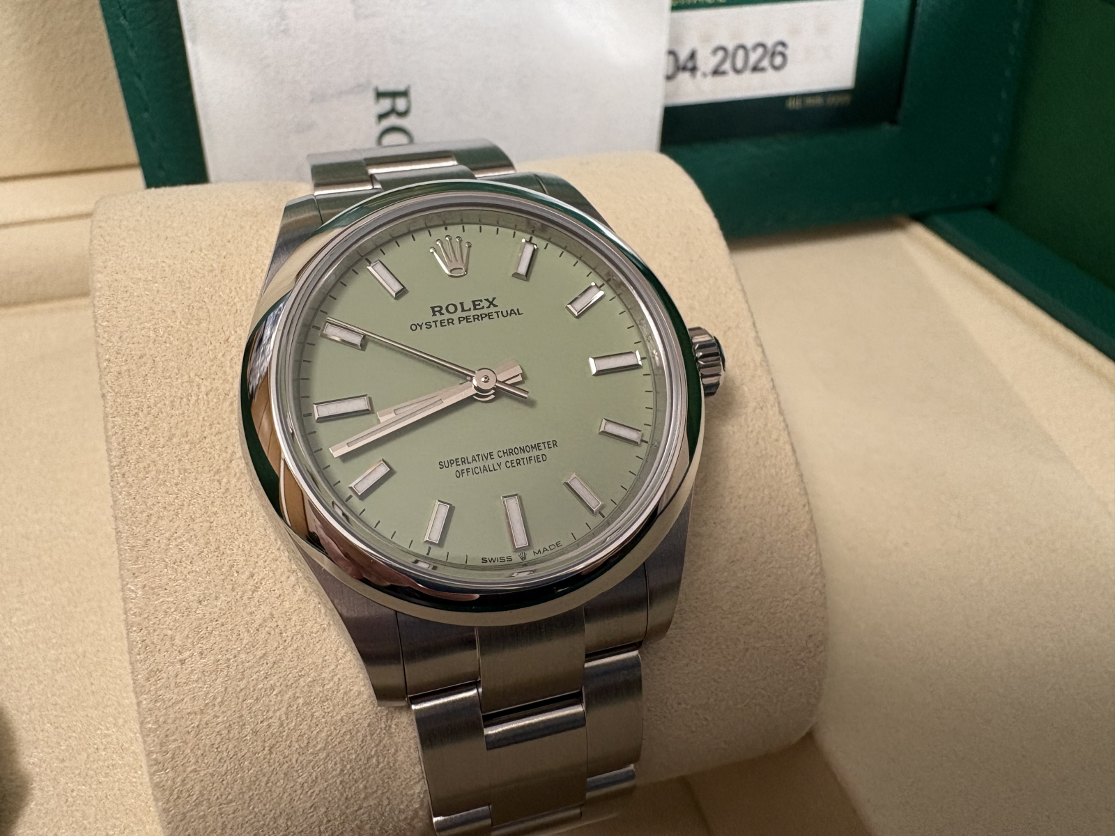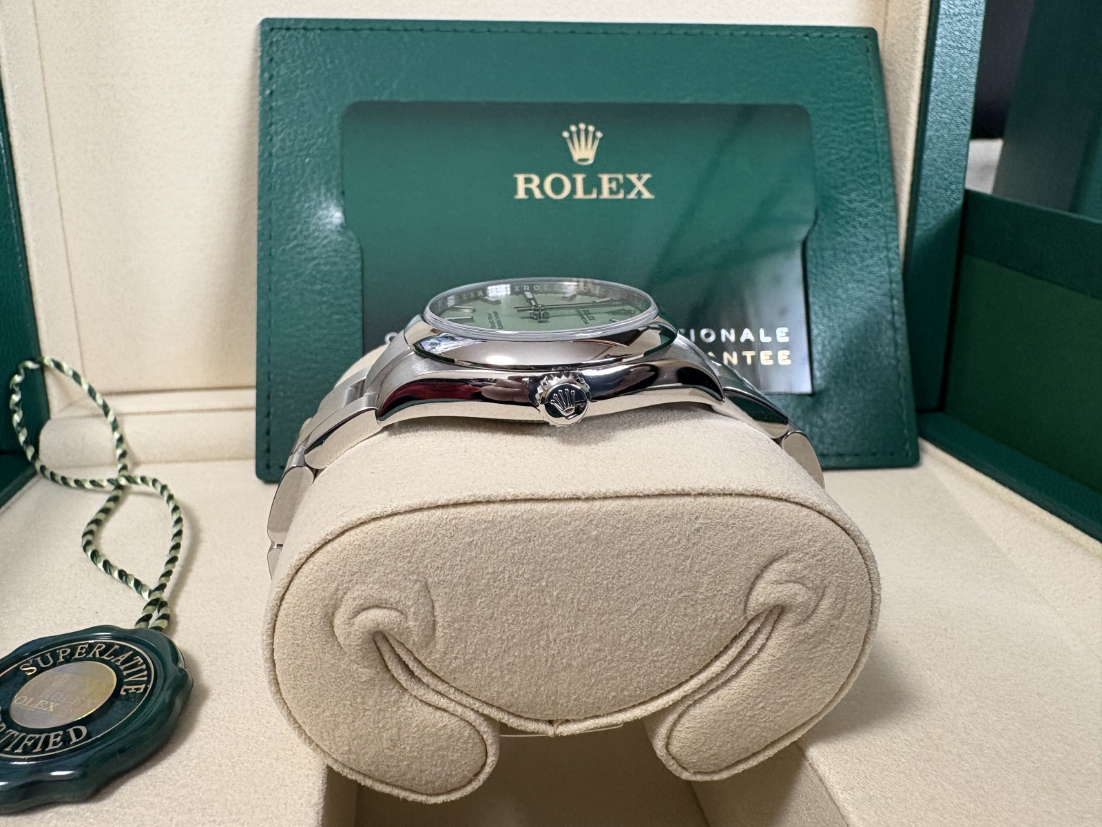 市場に出回る数も少ないピスタチオグリーンのオイスターパーペチュアル31です。