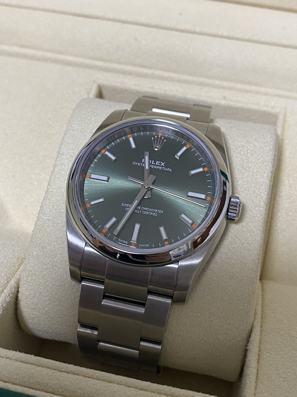 【値下げ!】ロレックス オイスターパーペチュアル34 オリーブグリーン 交換前文字盤付き