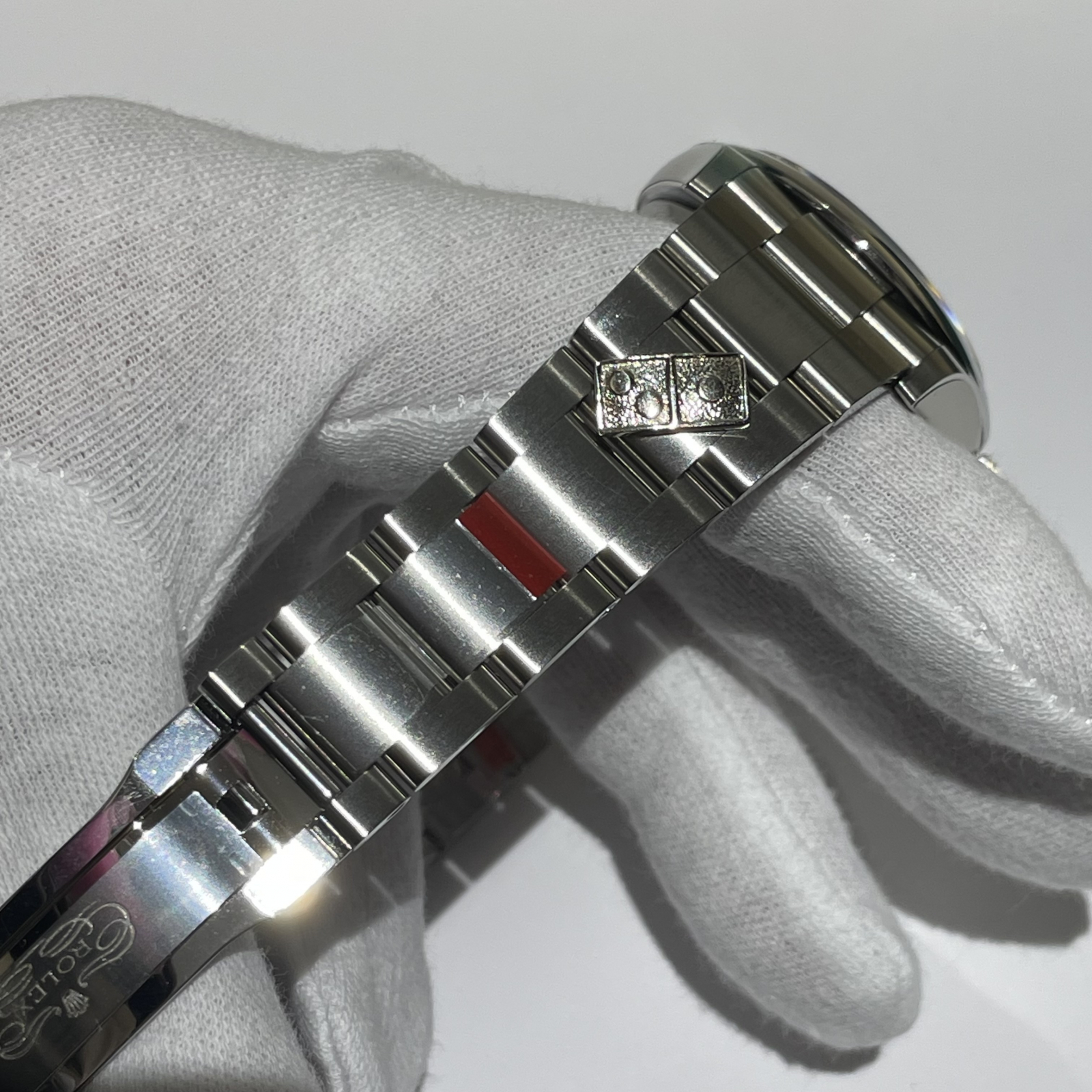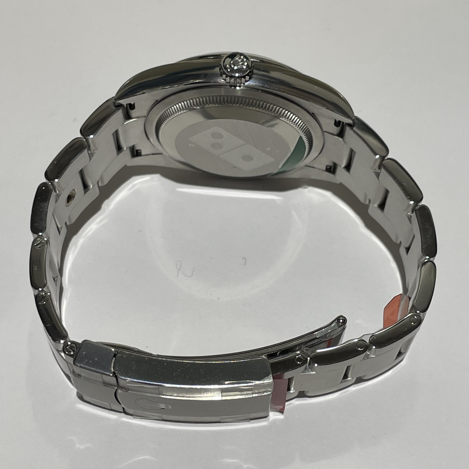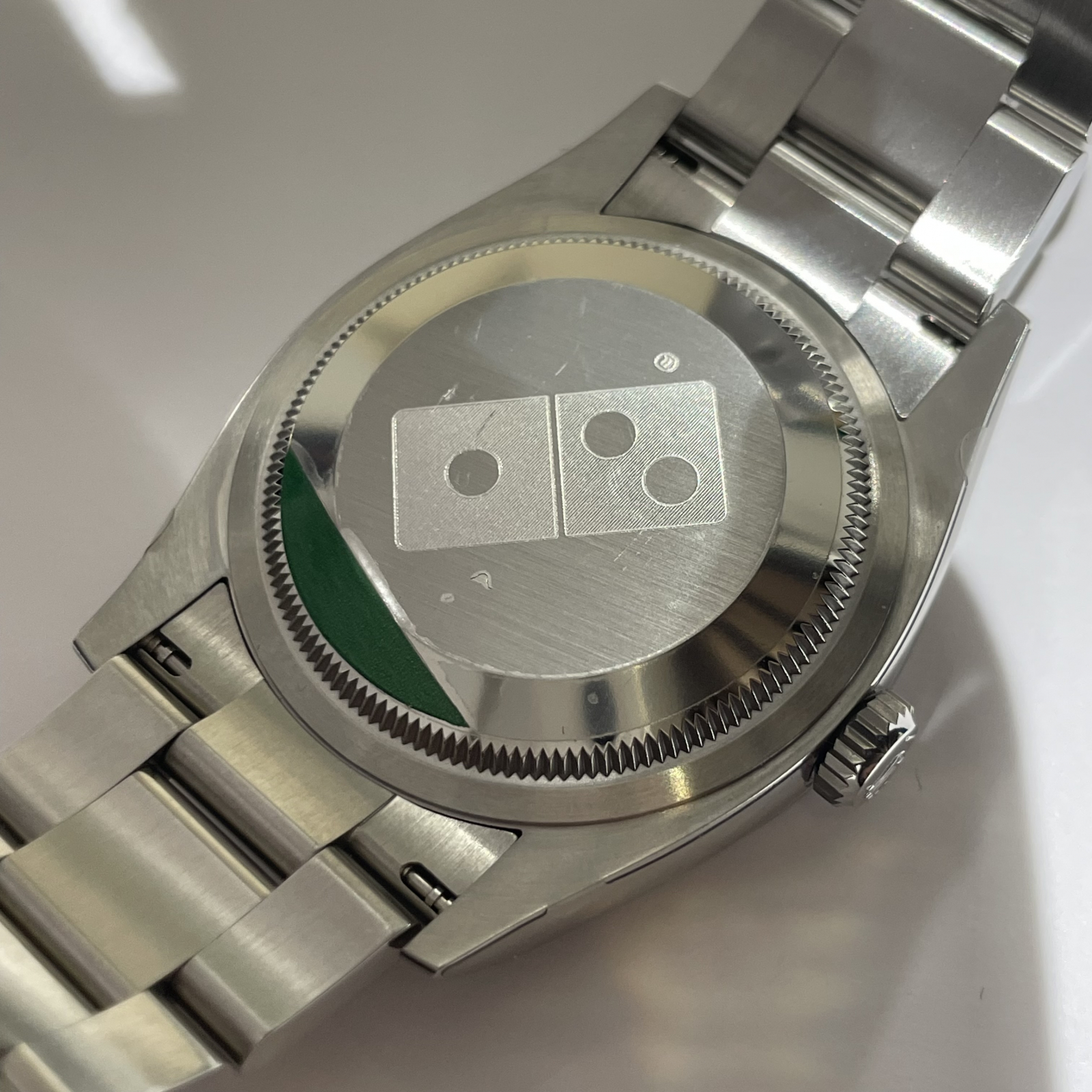 店舗オーナーや成績優秀な従業員に贈呈されるドミノピザWネームモデルです。2020年に登場した「Ref:126000」のブレスレット部分にロゴプレートが配置され、裏蓋にはロゴも刻印が施されています。あまり数の多くないモデルですのでコレクターの方にもオススメです。