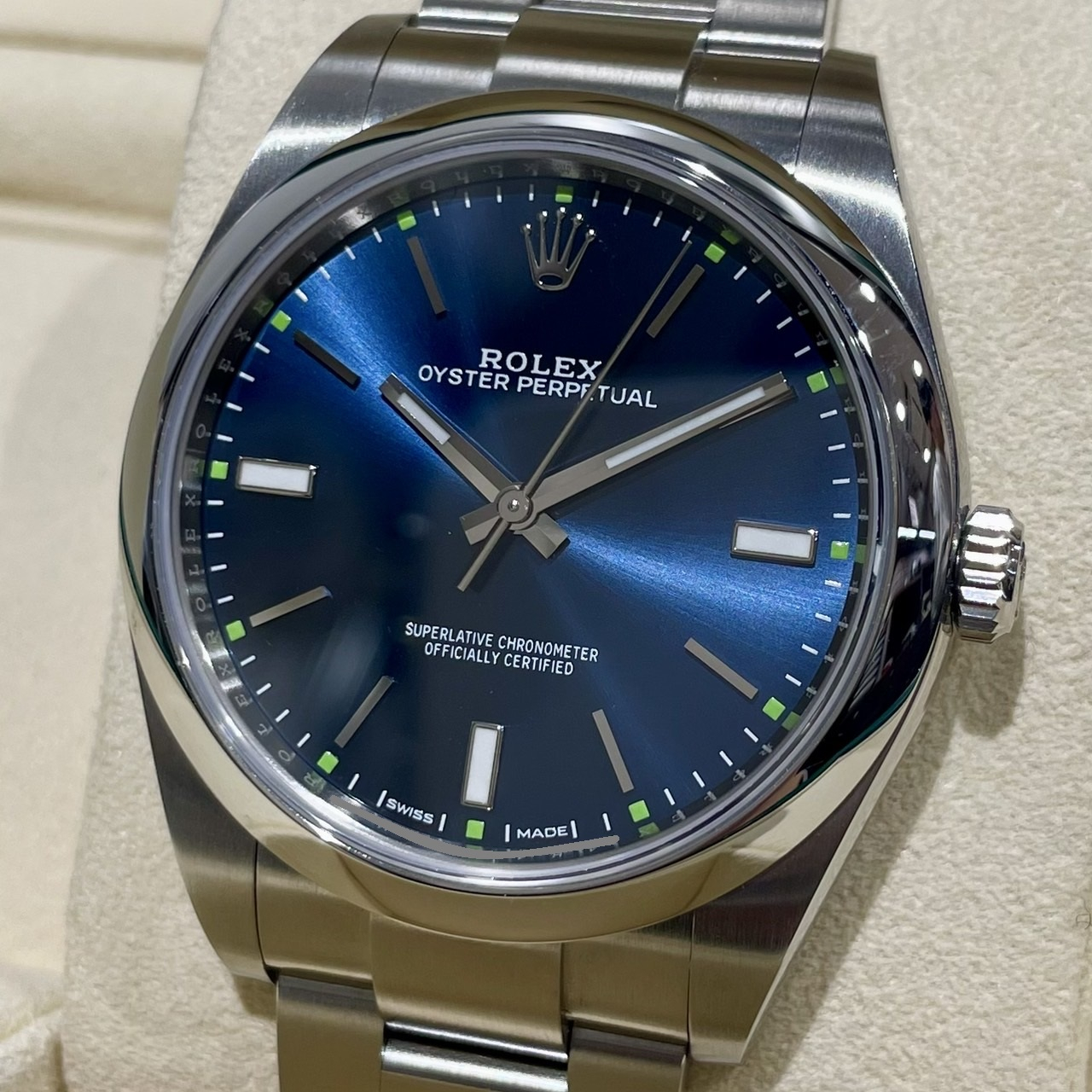 2020年に廃盤になったオイスターパーペチュアル39の青文字盤が入荷致しました。