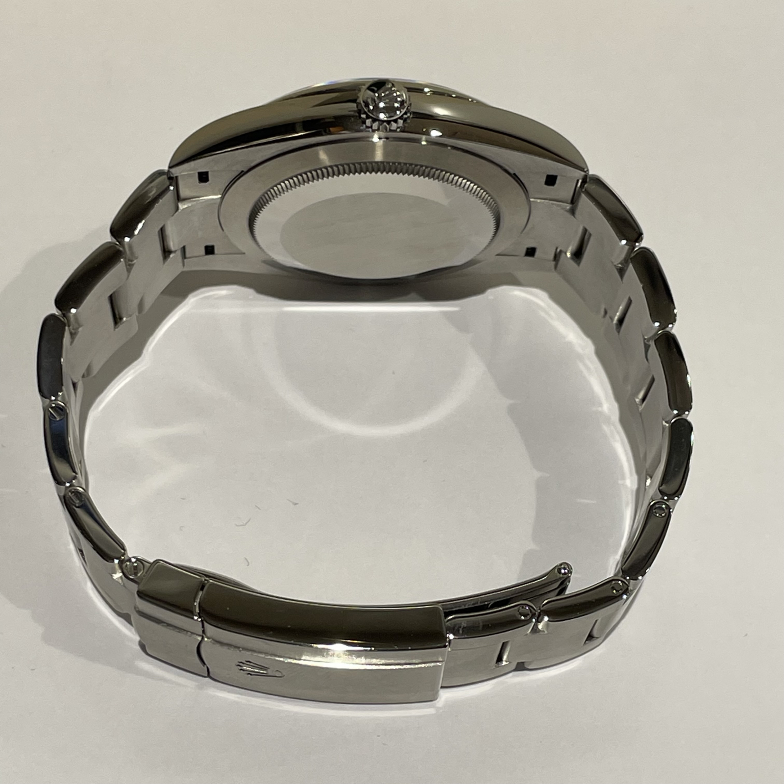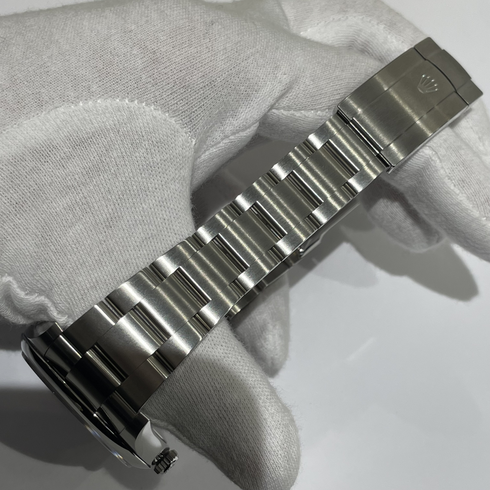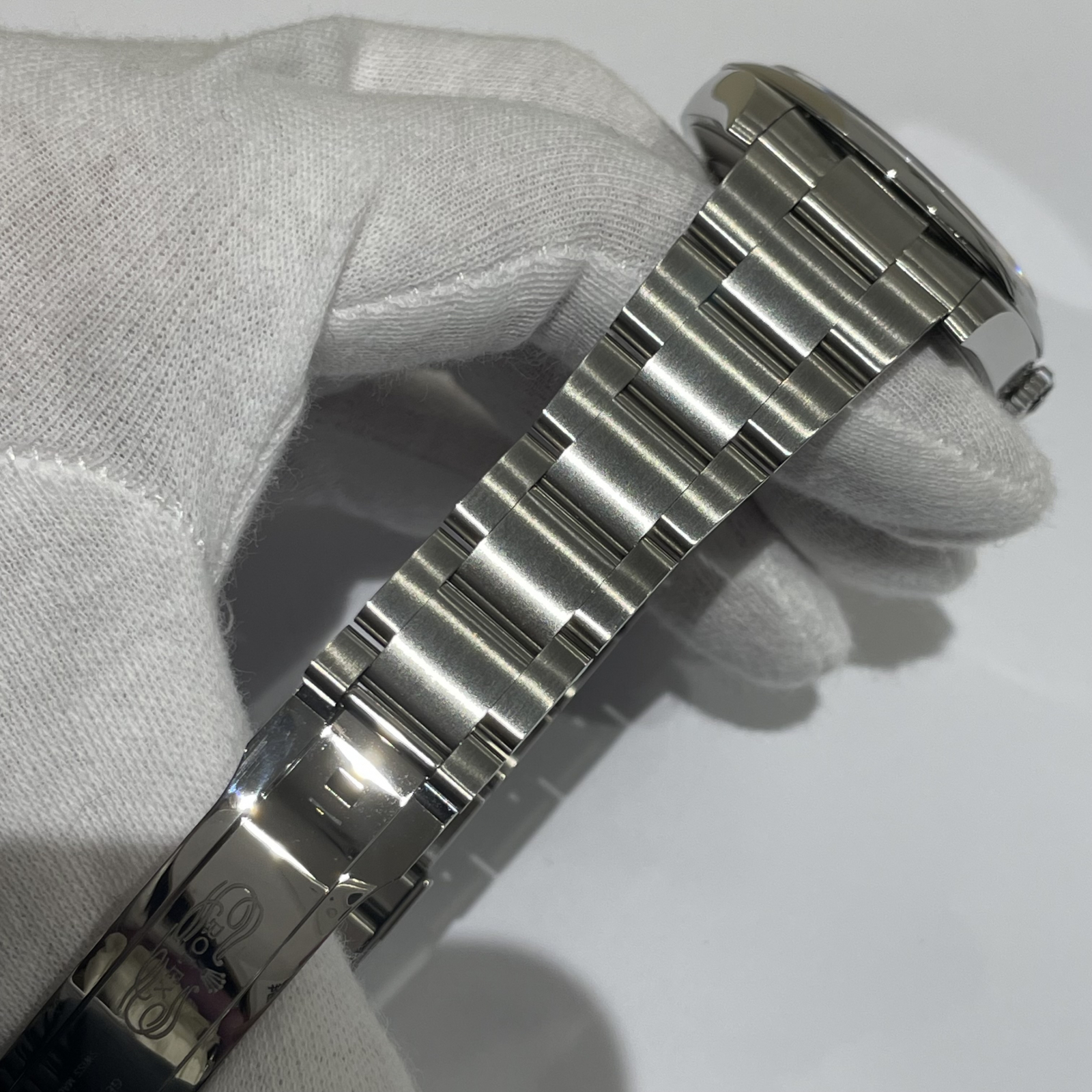 オイスターパーペチュアルはケースサイズと文字盤カラーのバリエーションが豊富なため、年代問わず人気のお品物です。こちらの文字盤は、オンオフ問わず使用することが可能な黒文字盤となっておりますのでお探しの方が多いモデルとなっております。