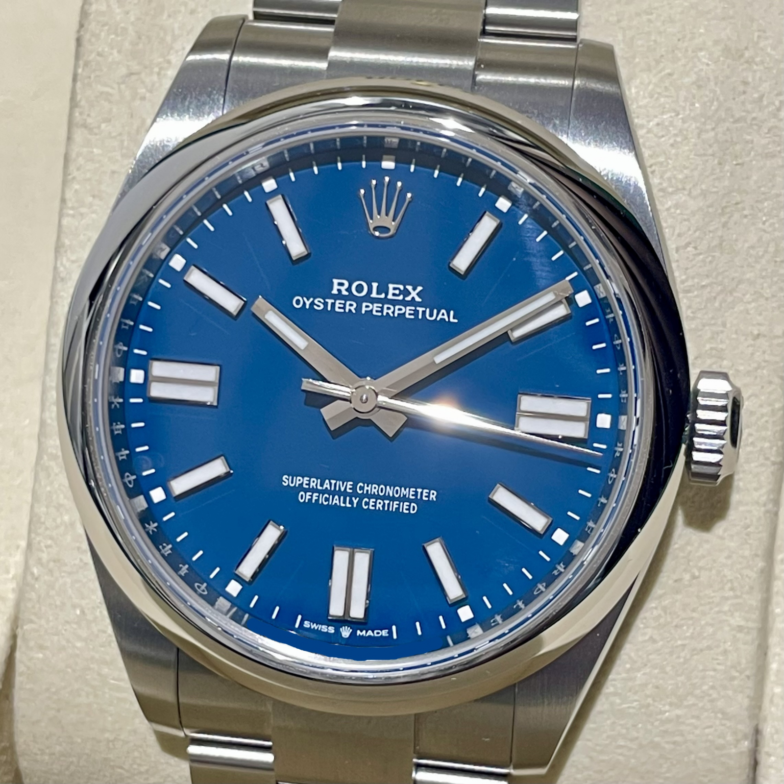 ロレックスから現行モデル オイパペ41 メッドブルー文字盤が入荷いたしました。
