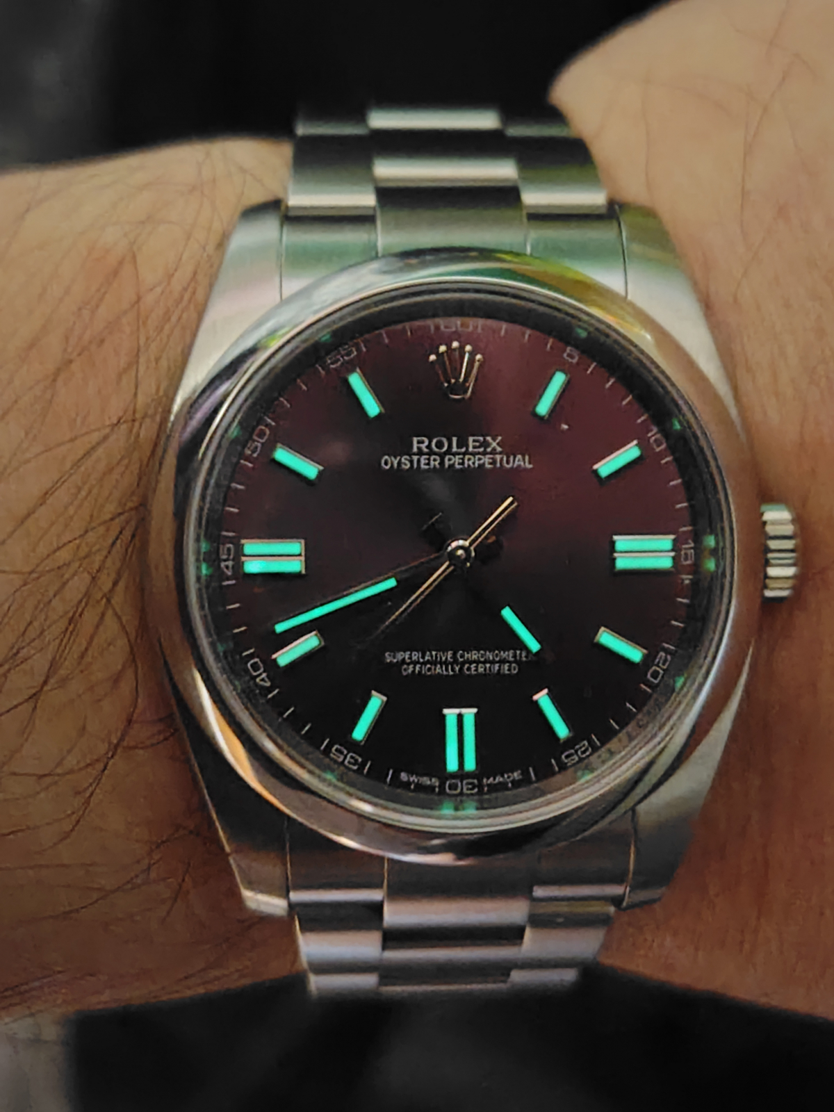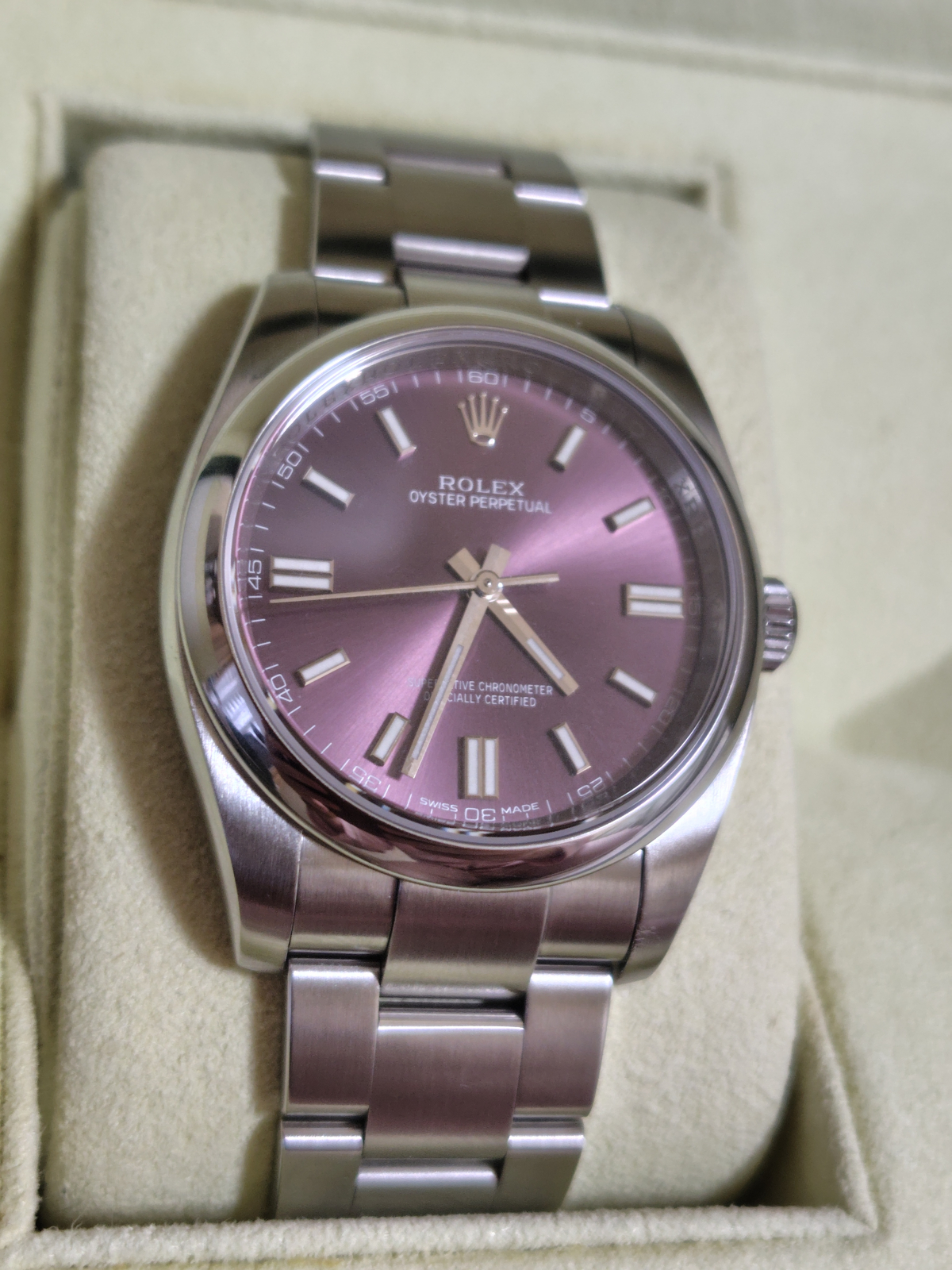 今回は、文字盤がレッドグレープで、普通のロレックスとは、一味違う魅力を持っています。