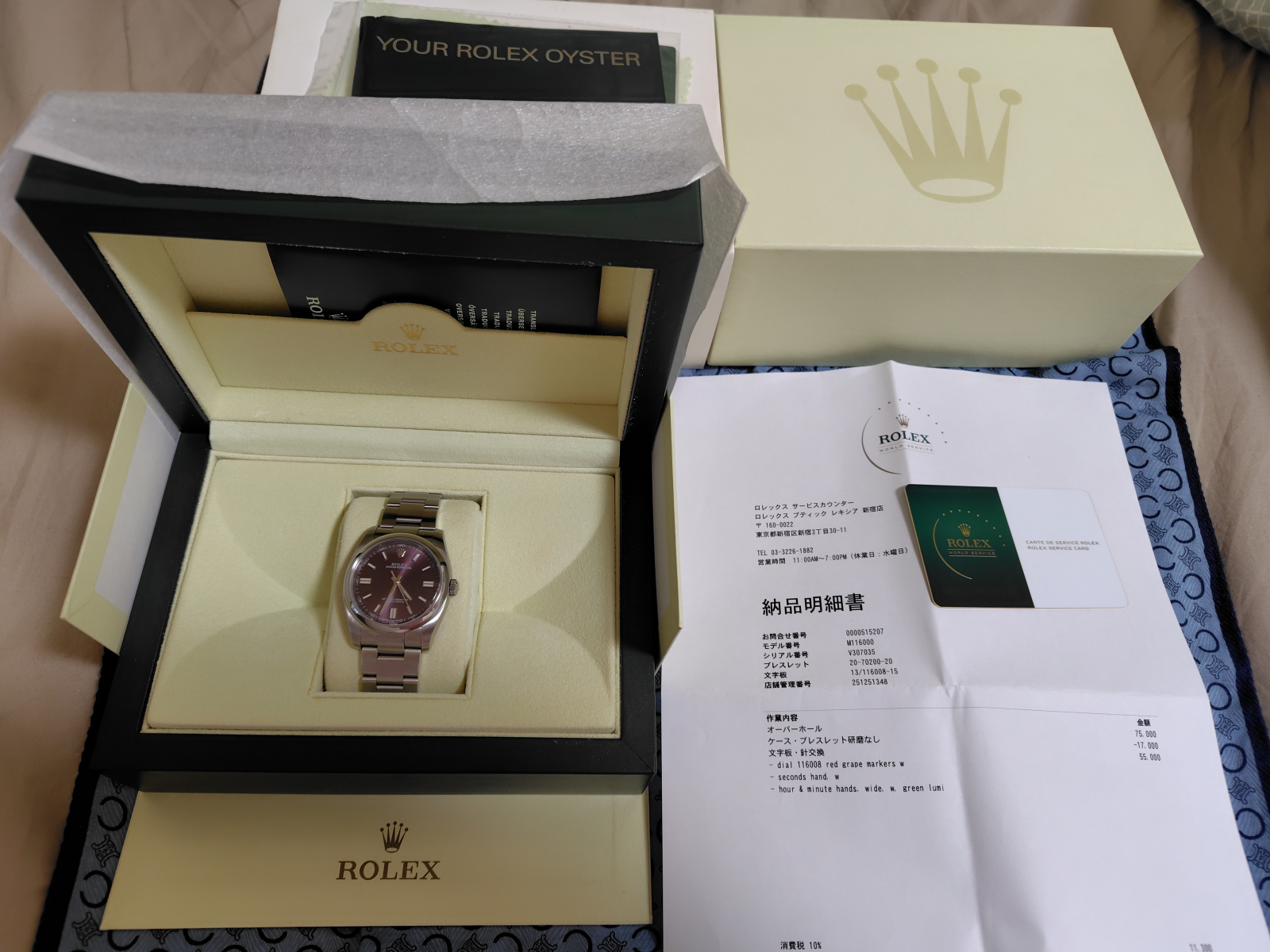 出品にあたり、日本ロレックスで、10万円以上かけて、オーバーホールと文字盤、針交換をしていますので、あと10年はオーバーホール不要とのことでした。