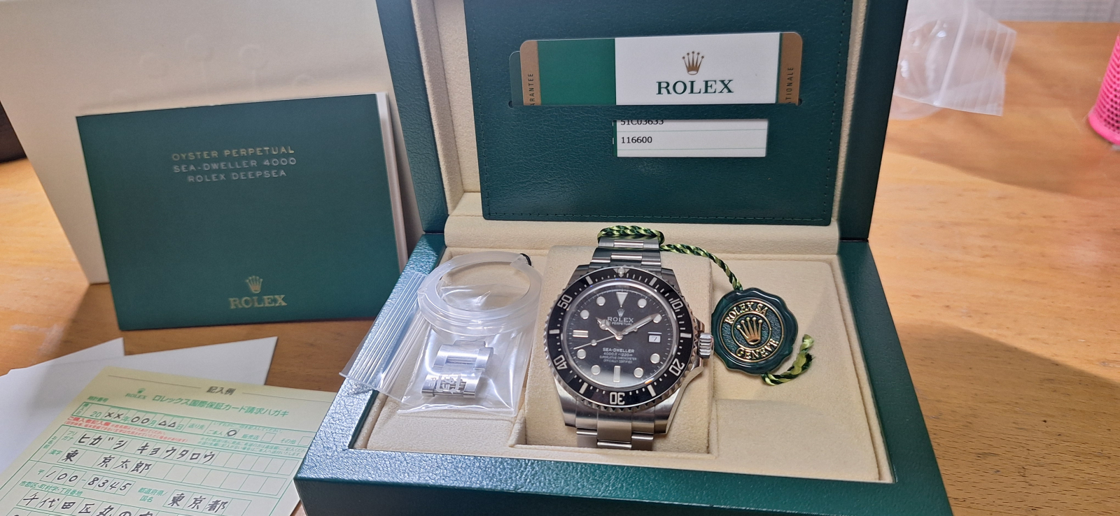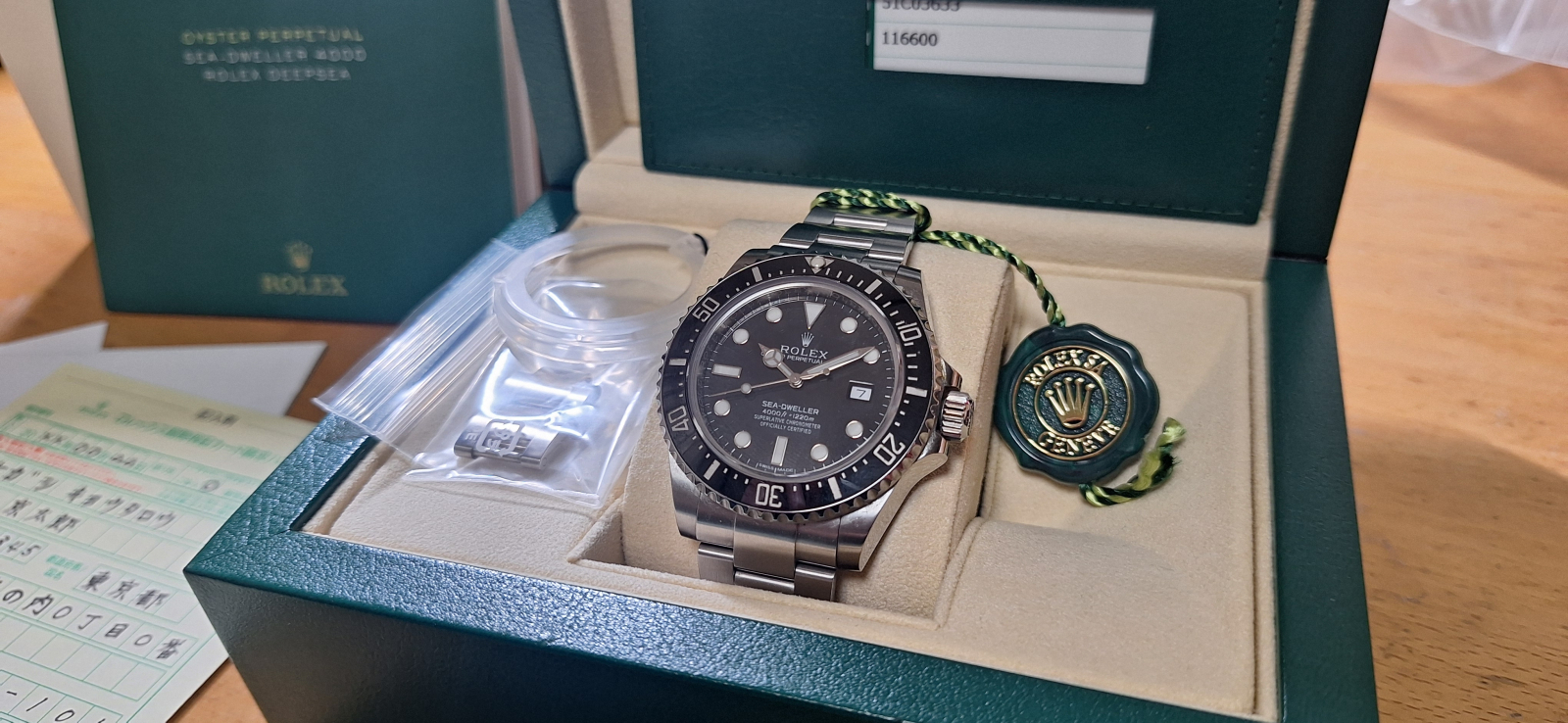 内箱、外箱、保証書、グリーンタグ、ベゼルカバー、余りコマ