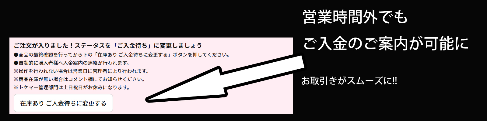 管理部署にてご入金を確認後、出品者様に商品の発送依頼を行います。