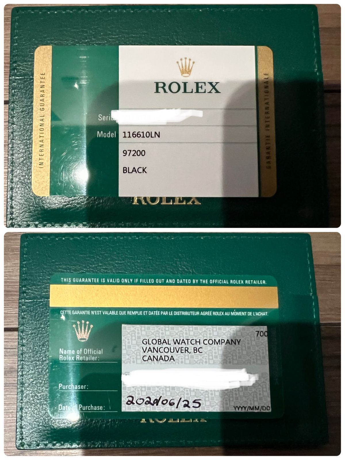 尚付属品は全て揃っておりサブマリーナーの116610LN最終年の20年の保証書となります。
