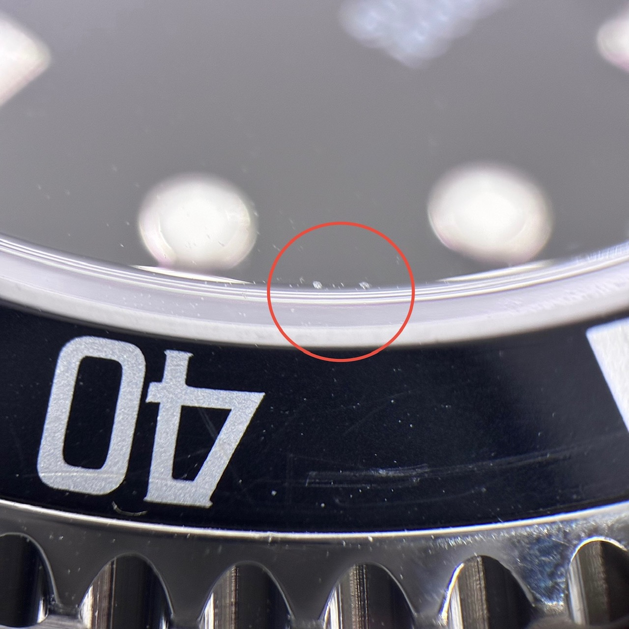 ガラスの7時位置に小さいチップがあります。また画像では写りませんでしたが7時8時側に薄い線キズがございます。王冠透かしはございません。