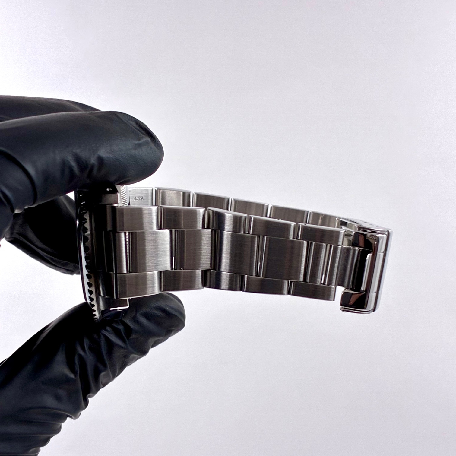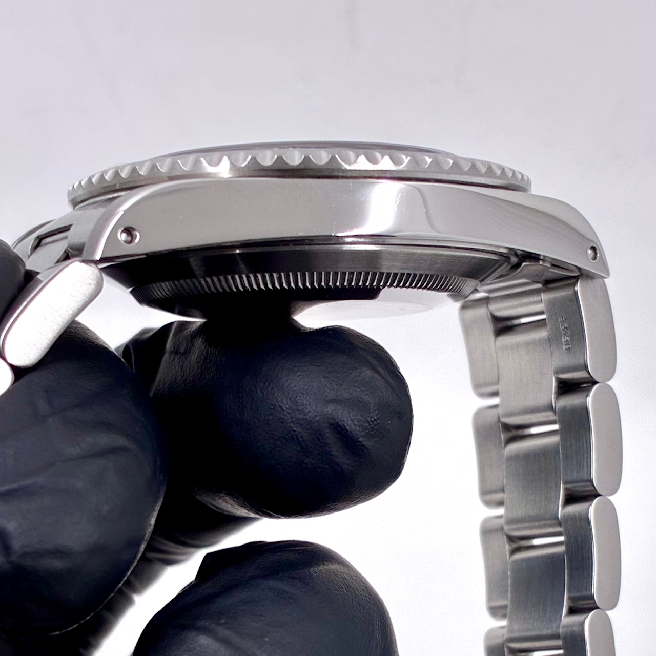 出品者様は中古購入のため、オーバーホール歴およびポリッシュ歴は不明との事ですが、ガラスとベゼル以外は非常にきれいで研磨されているのがわかります。ケース痩せはそこまで感じませんがブレスレットはややヨレがあります。