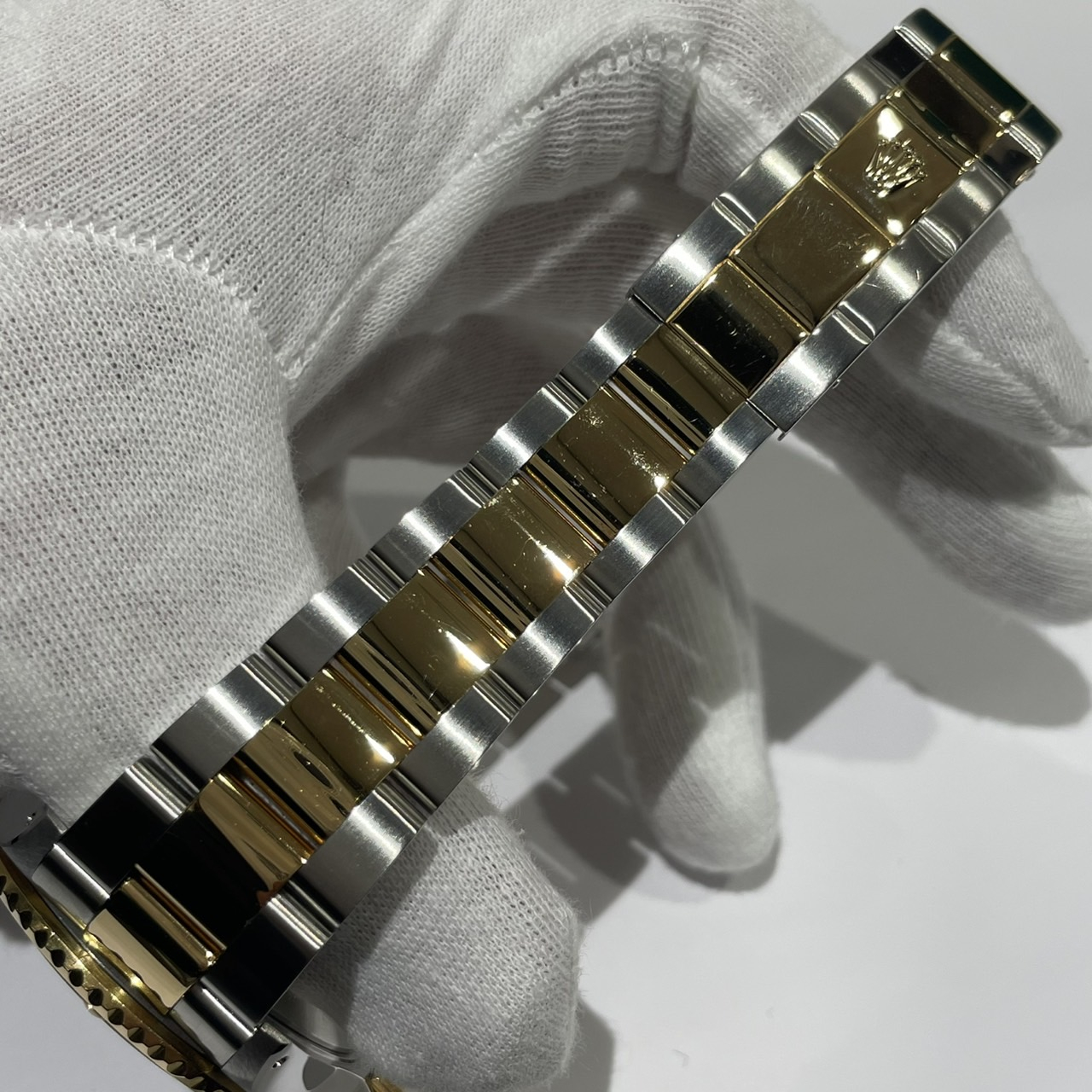 イエローゴールド部分に細かい使用スレキズは見受けられますが、年式を考慮するとヨレも少ない美品のお品物です。
