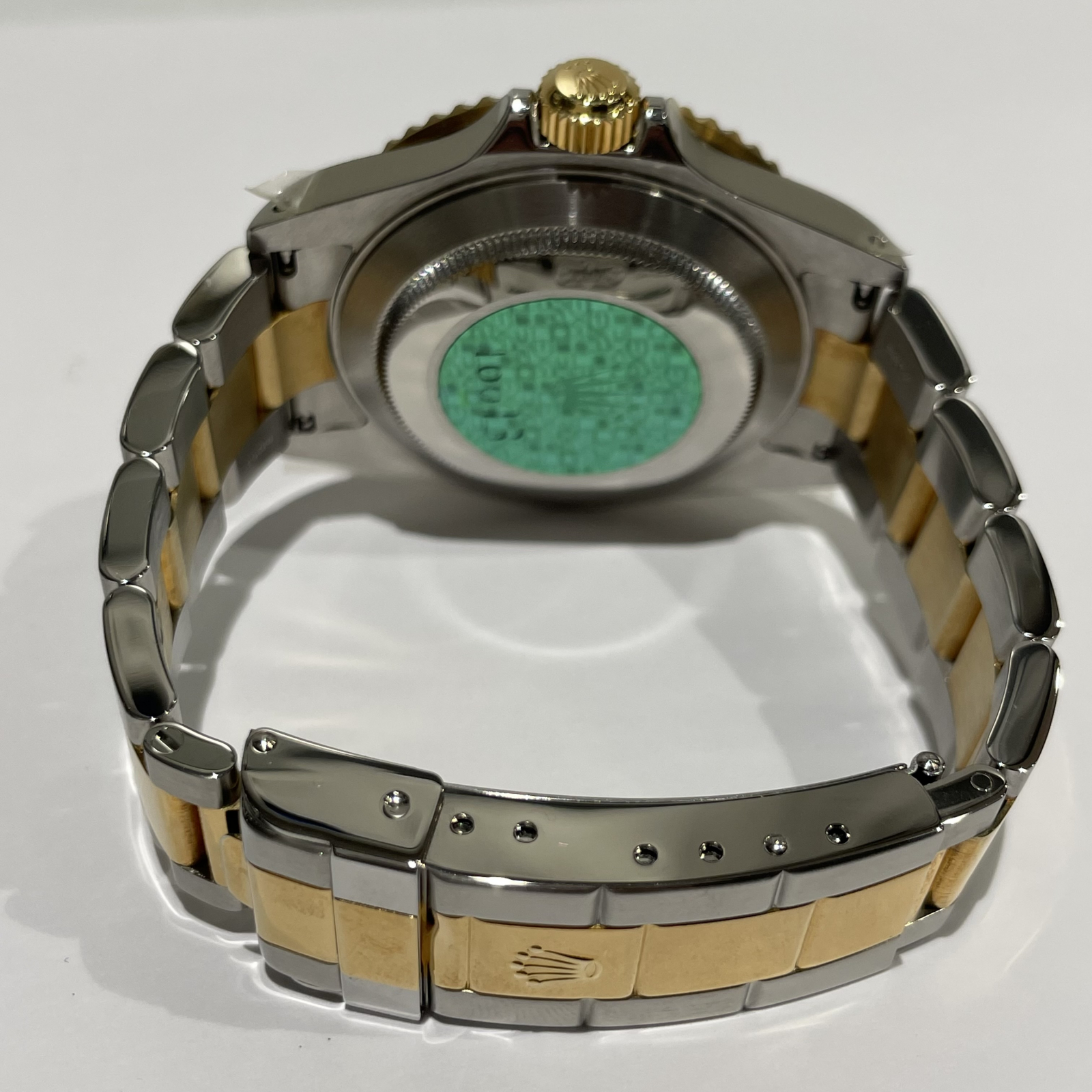 YG部分とバックル部分にスレキズがございますが、裏蓋とケースサイドにシールが残っている美品のお品物です。