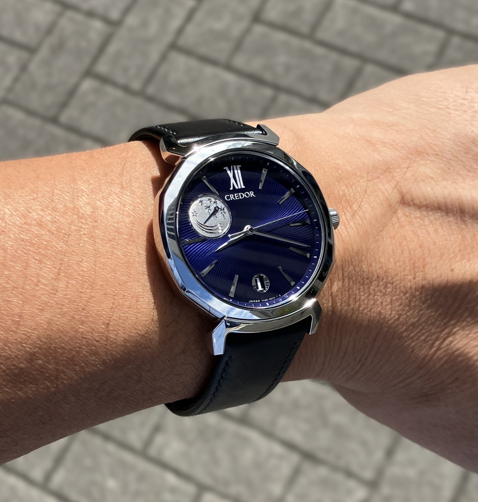 宙(そら)をテーマに、星の軌跡を思わせる放射状のヘアラインと、彗星をイメージしたパワーリザーブ表示が特徴です。