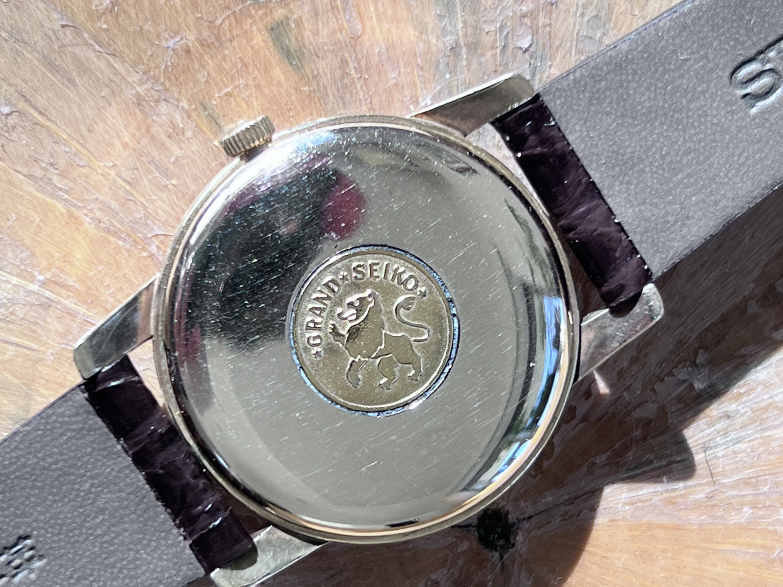 本品は、1960年5月の製品で、山型針、12時スプリット・インデックス、前期ライオンメダリオンと、「オリジナル」としてのすべての要件を満たした「プリント・ロゴ文字盤」のGS1stになります。